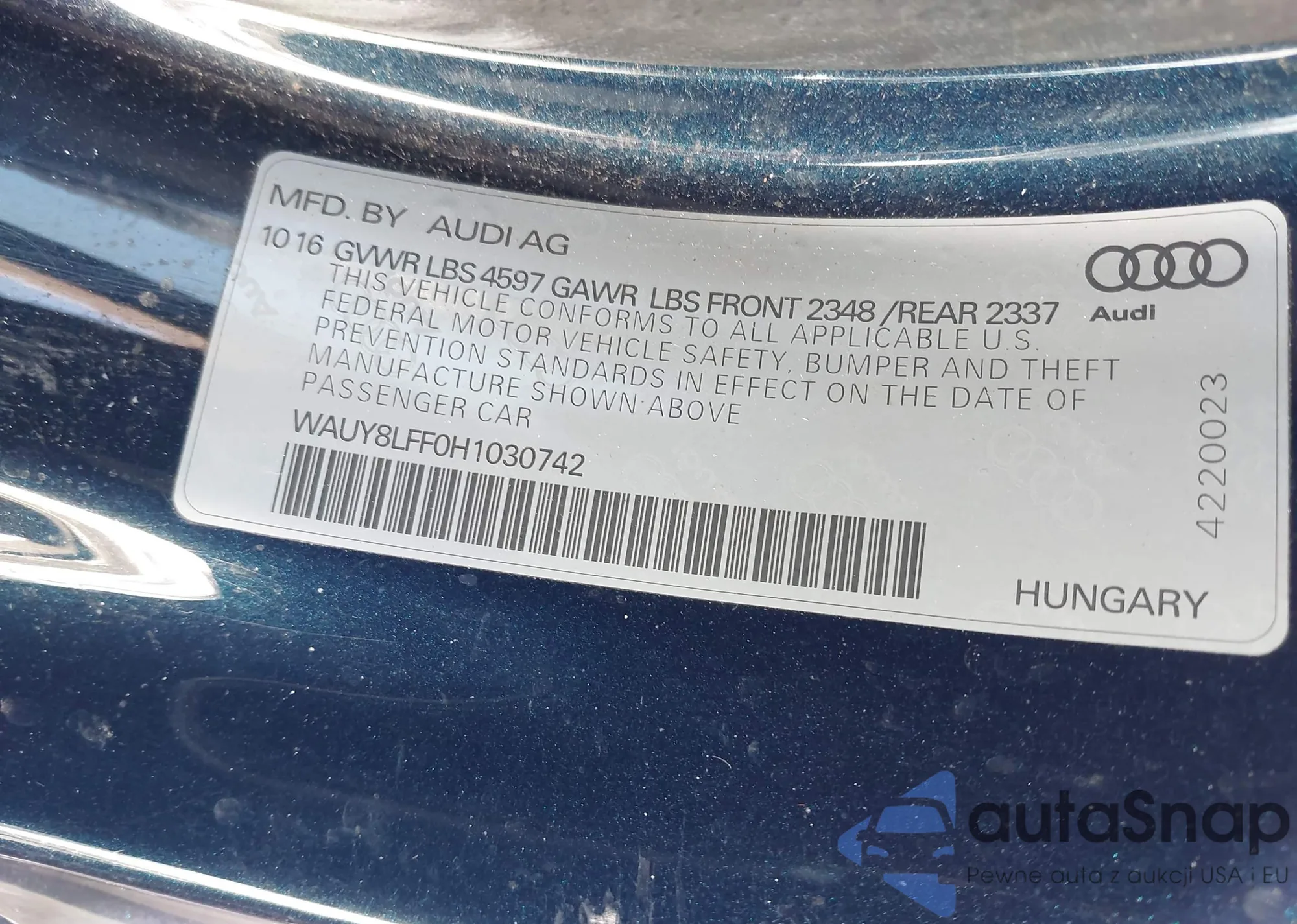 • VIN: WAUY8LFF0H1030742