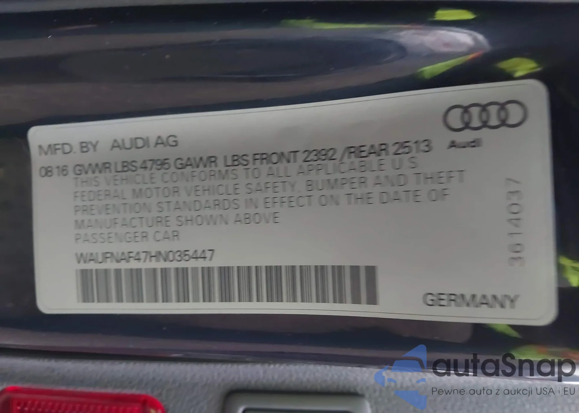 Samochód Audi A4 2017 (VIN WAUFNAF47HN035447) nie był wcześniej licytowany. Dokumenty są czyste, przebieg odpowiada lub jest niższy niż średnia rynku. Sprzedaje go firma ubezpieczeniowa – polecamy zakup. Dostawa do portu zajmie ok. 6–8 tygodni.