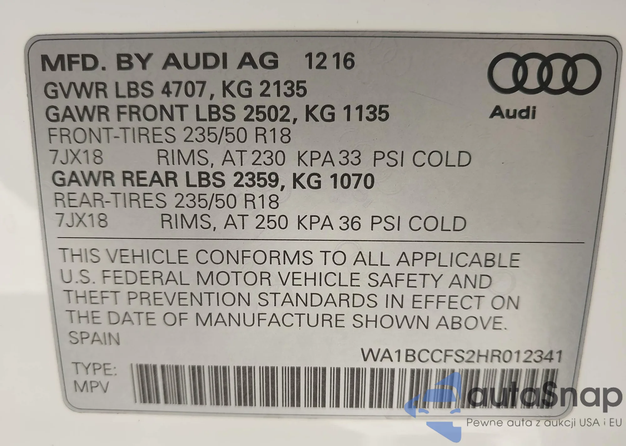 VIN: WA1BCCFS2HR012341