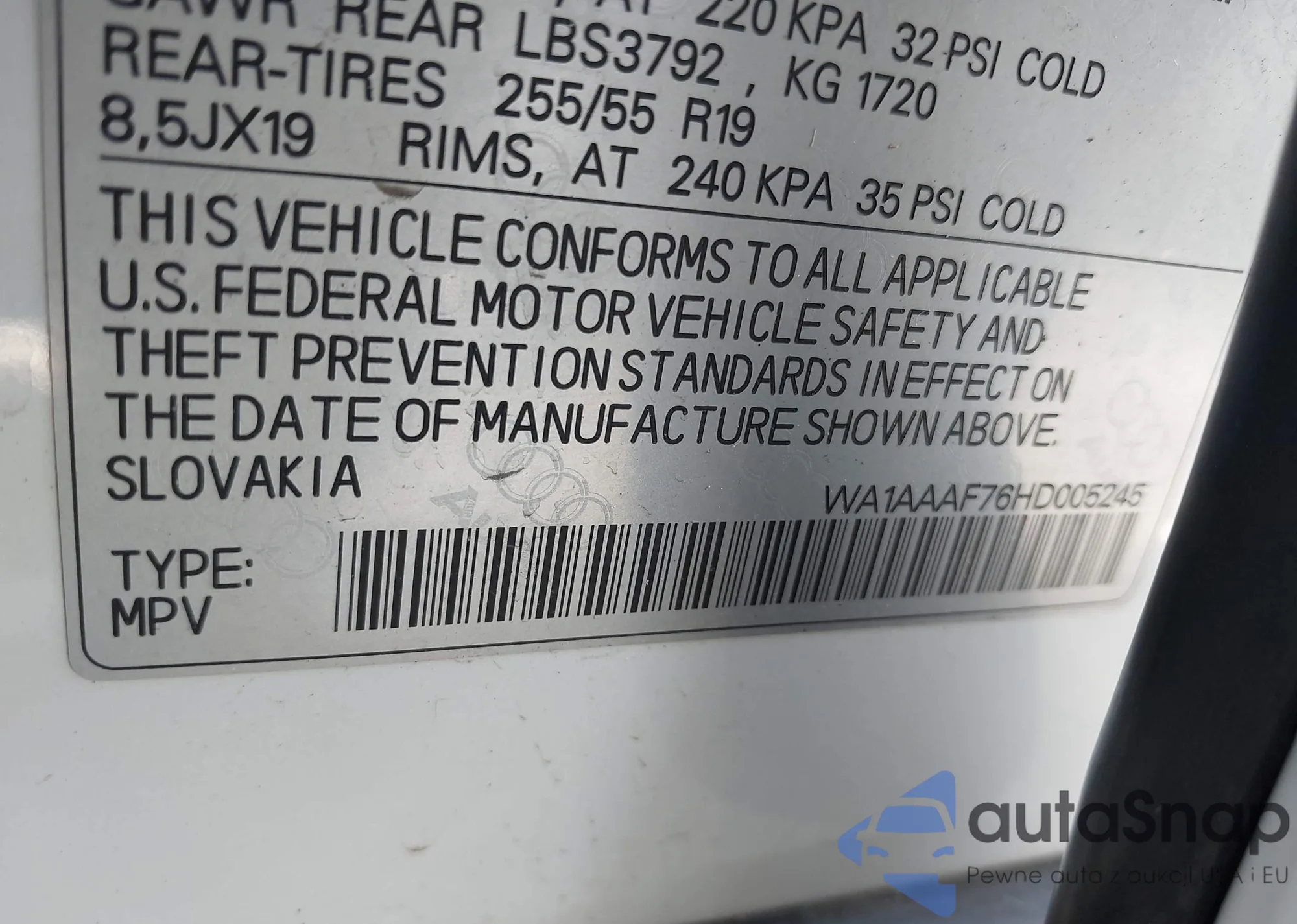 • VIN: WA1AAAF76HD005245