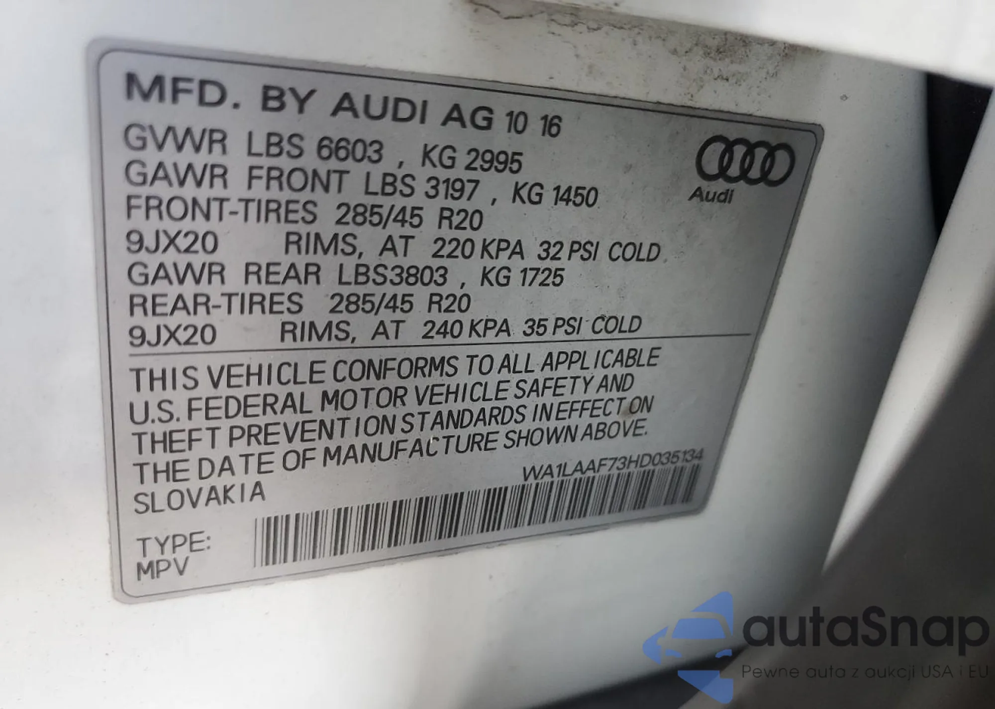 VIN: WA1LAAF73HD035134