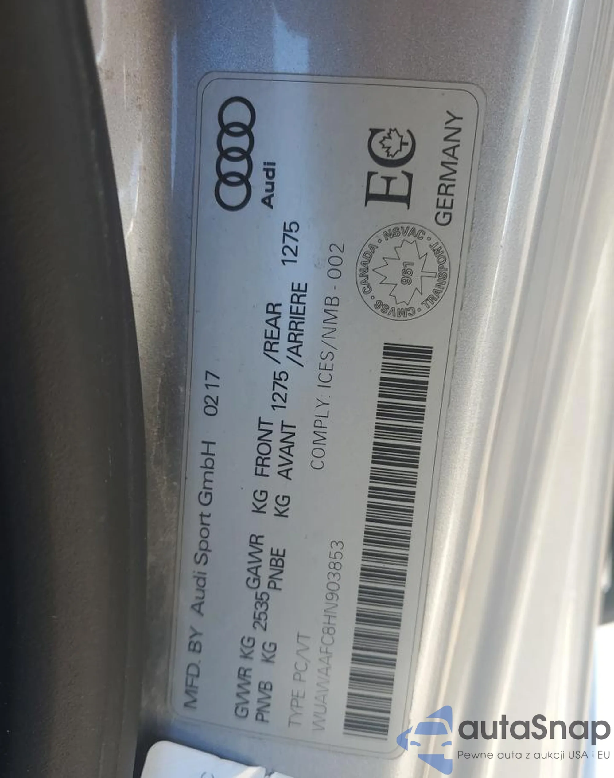 VIN: WUAWAAFC8HN903853