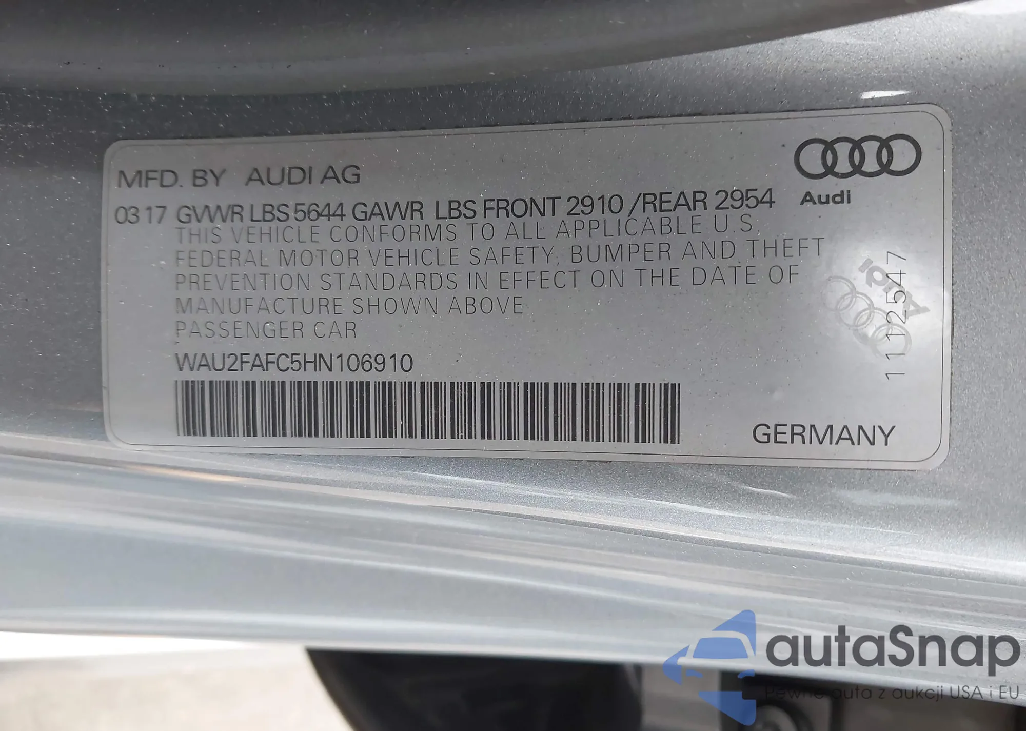 VIN: WAU2FAFC5HN106910