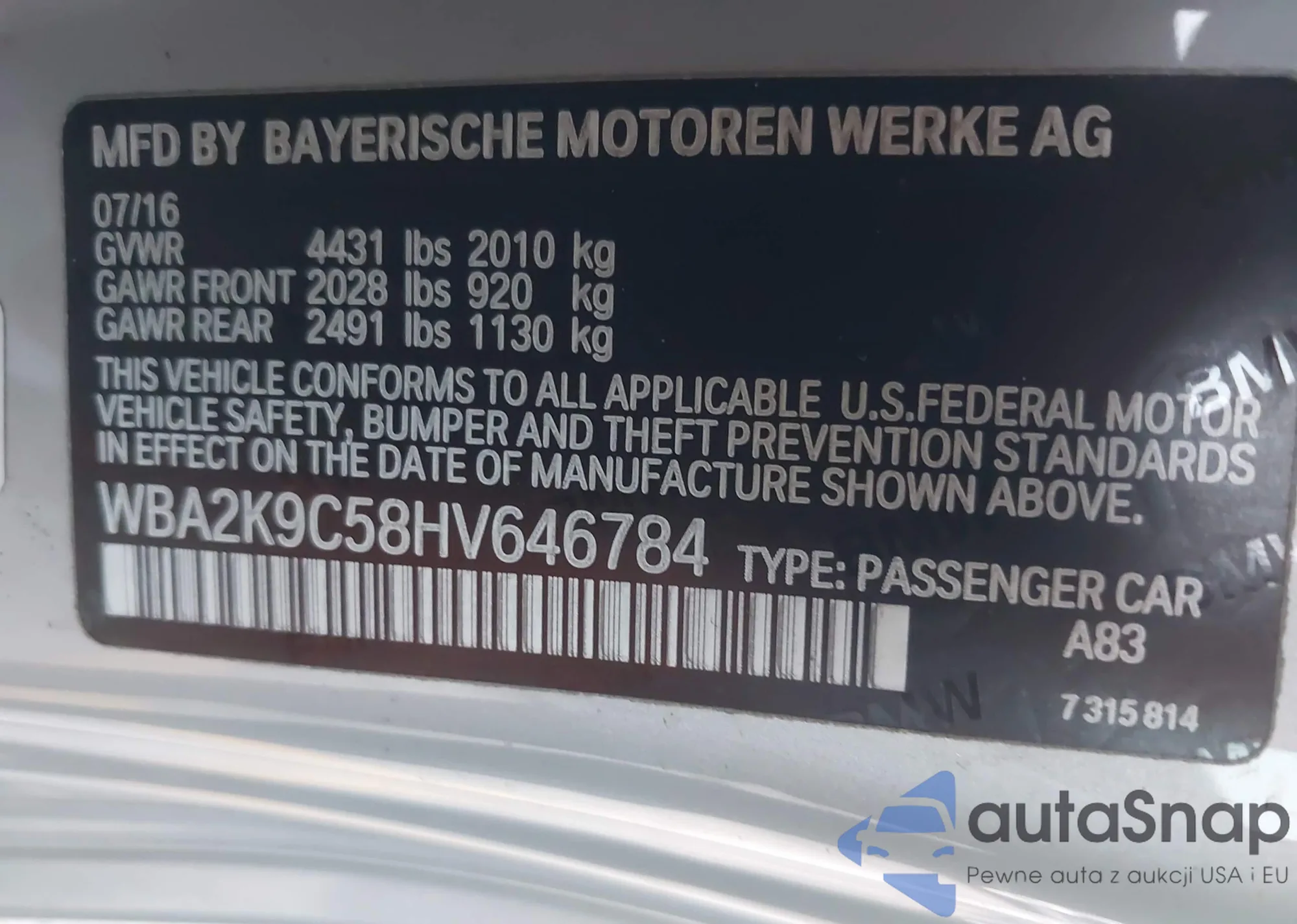 VIN: WBA2K9C58HV646784