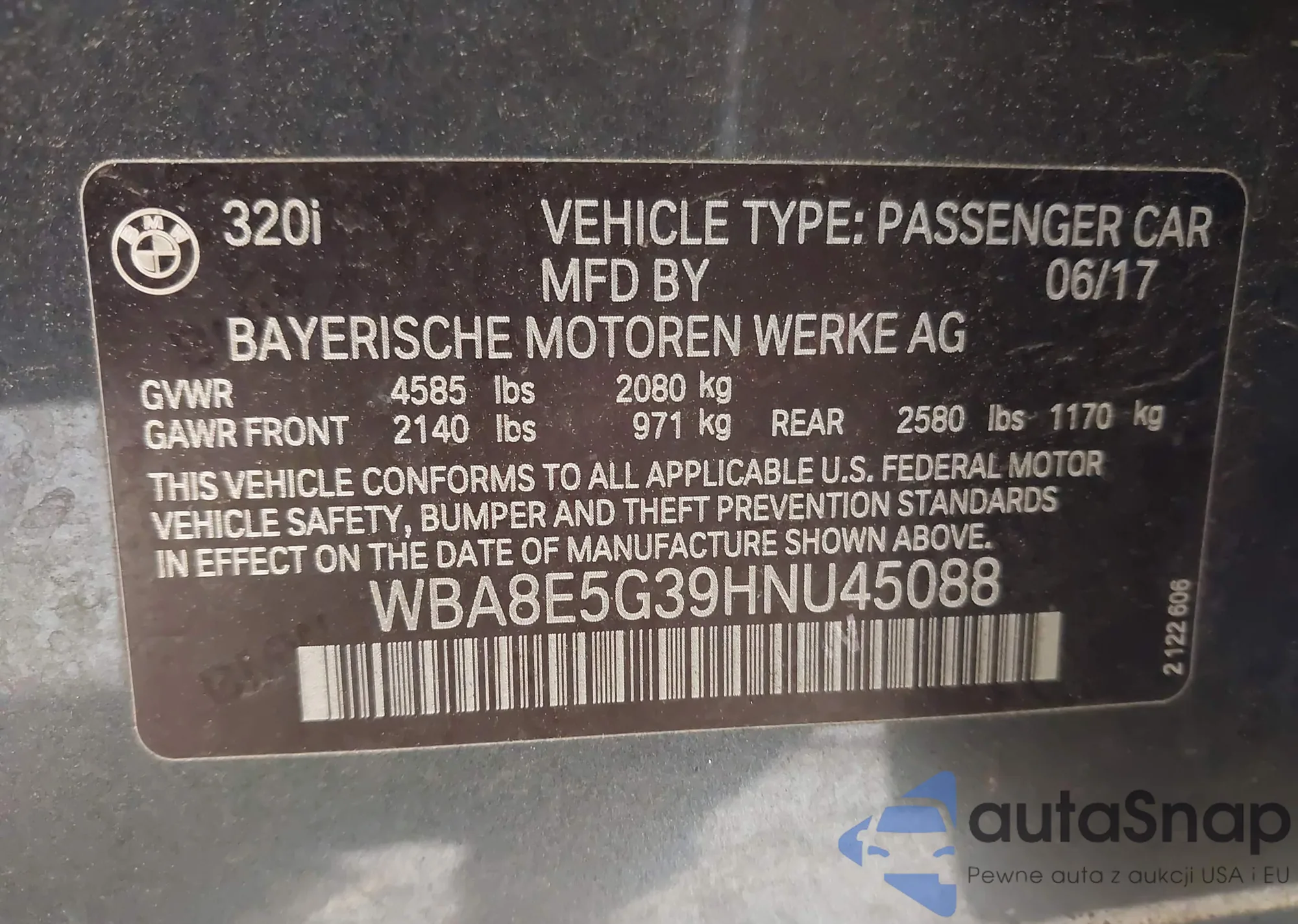 VIN: WBA8E5G39HNU45088