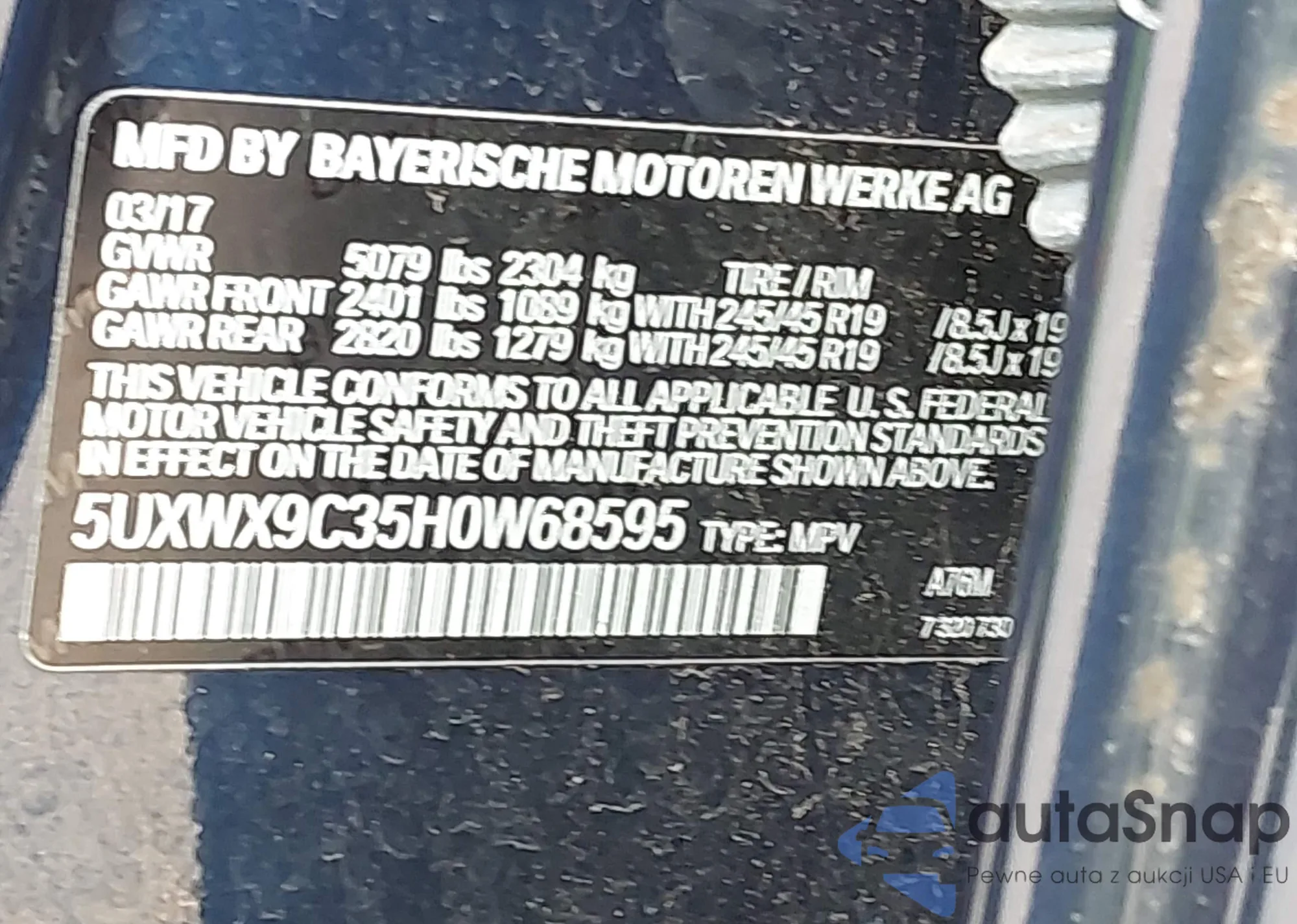 VIN: 5UXWX9C35H0W68595