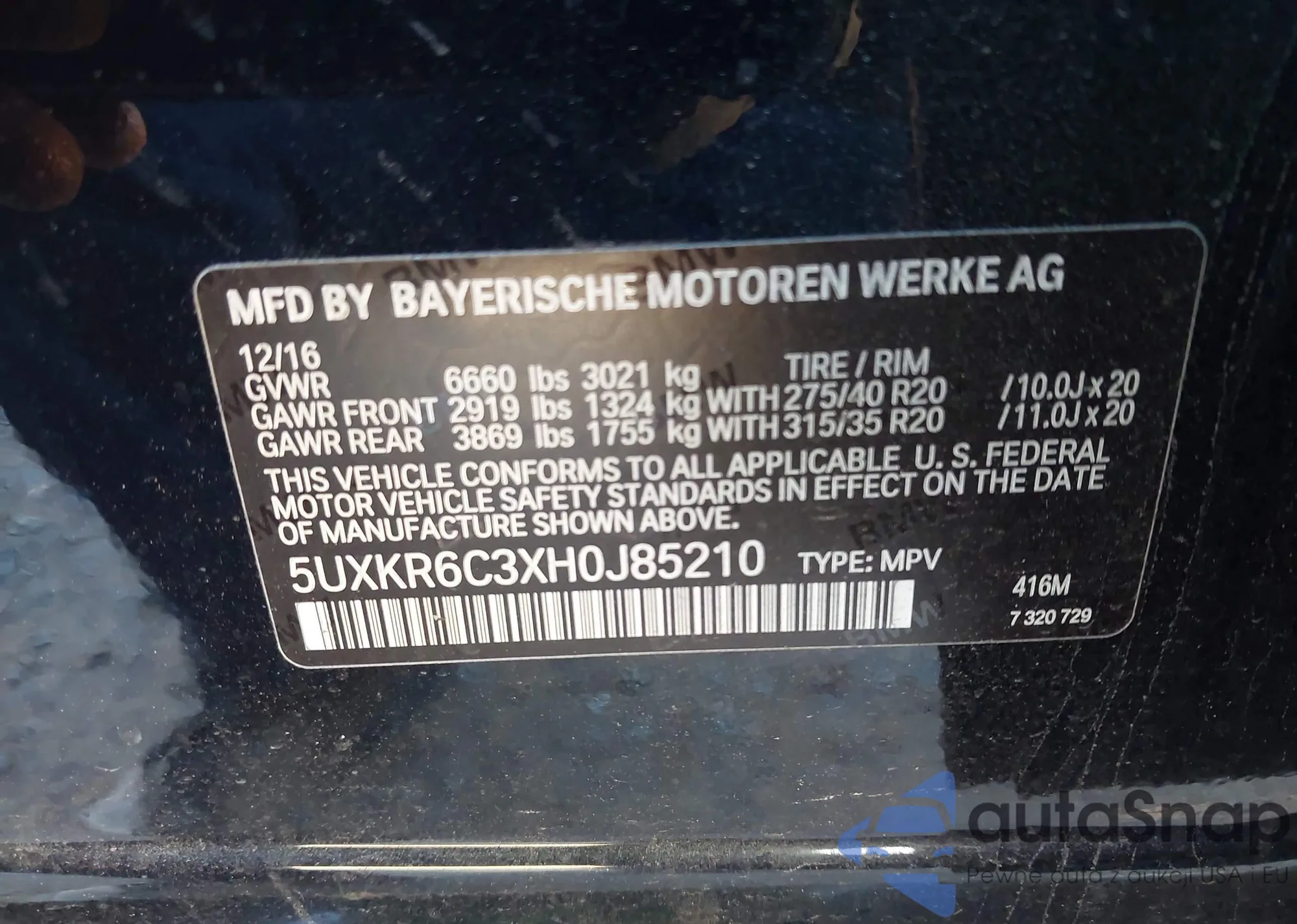 Samochód BMW X5 2017 (VIN 5UXKR6C3XH0J85210) nie był wcześniej licytowany. Dokumenty są czyste, przebieg odpowiada lub jest niższy niż średnia rynku. Sprzedaje go firma ubezpieczeniowa – polecamy zakup. Dostawa do portu zajmie ok. 6–8 tygodni.