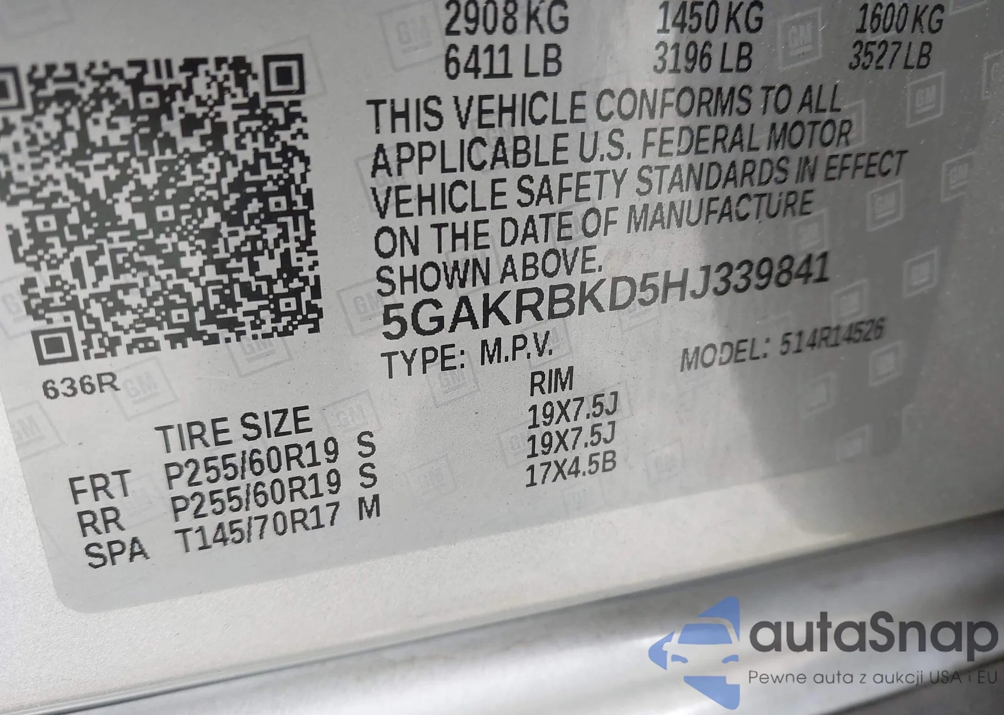 VIN: 5GAKRBKD5HJ339841