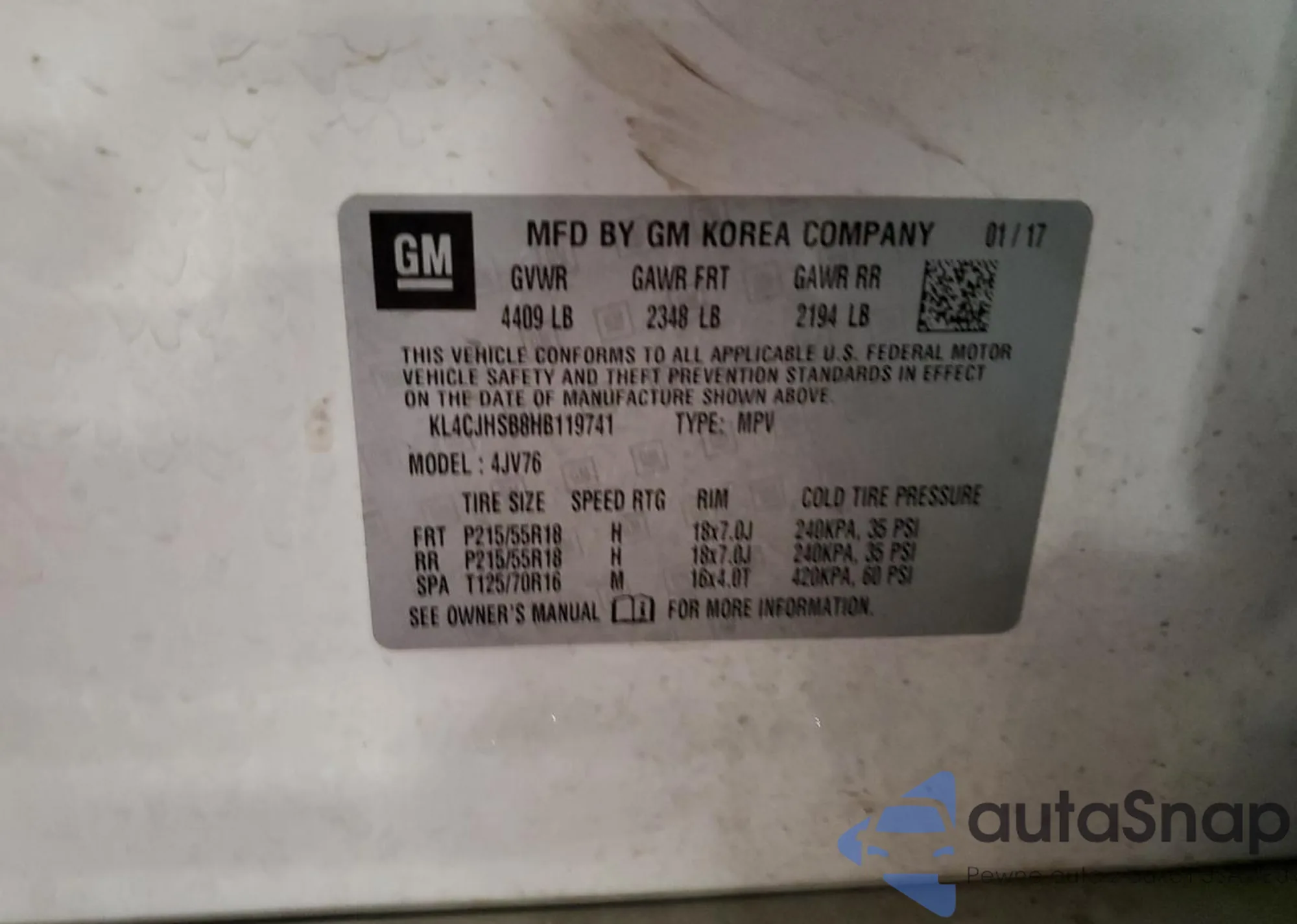 VIN: KL4CJHSB8HB119741