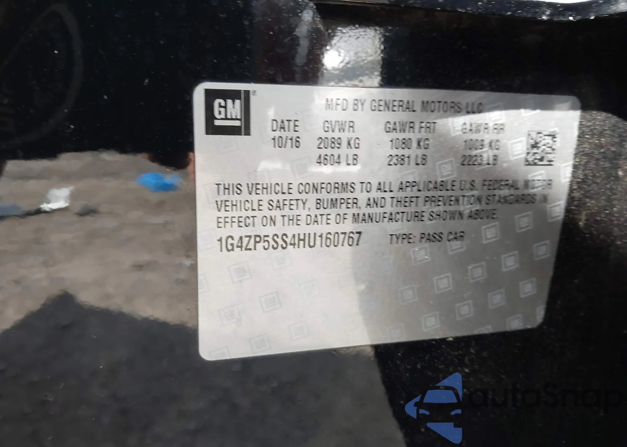 VIN: 1G4ZP5SS4HU160767