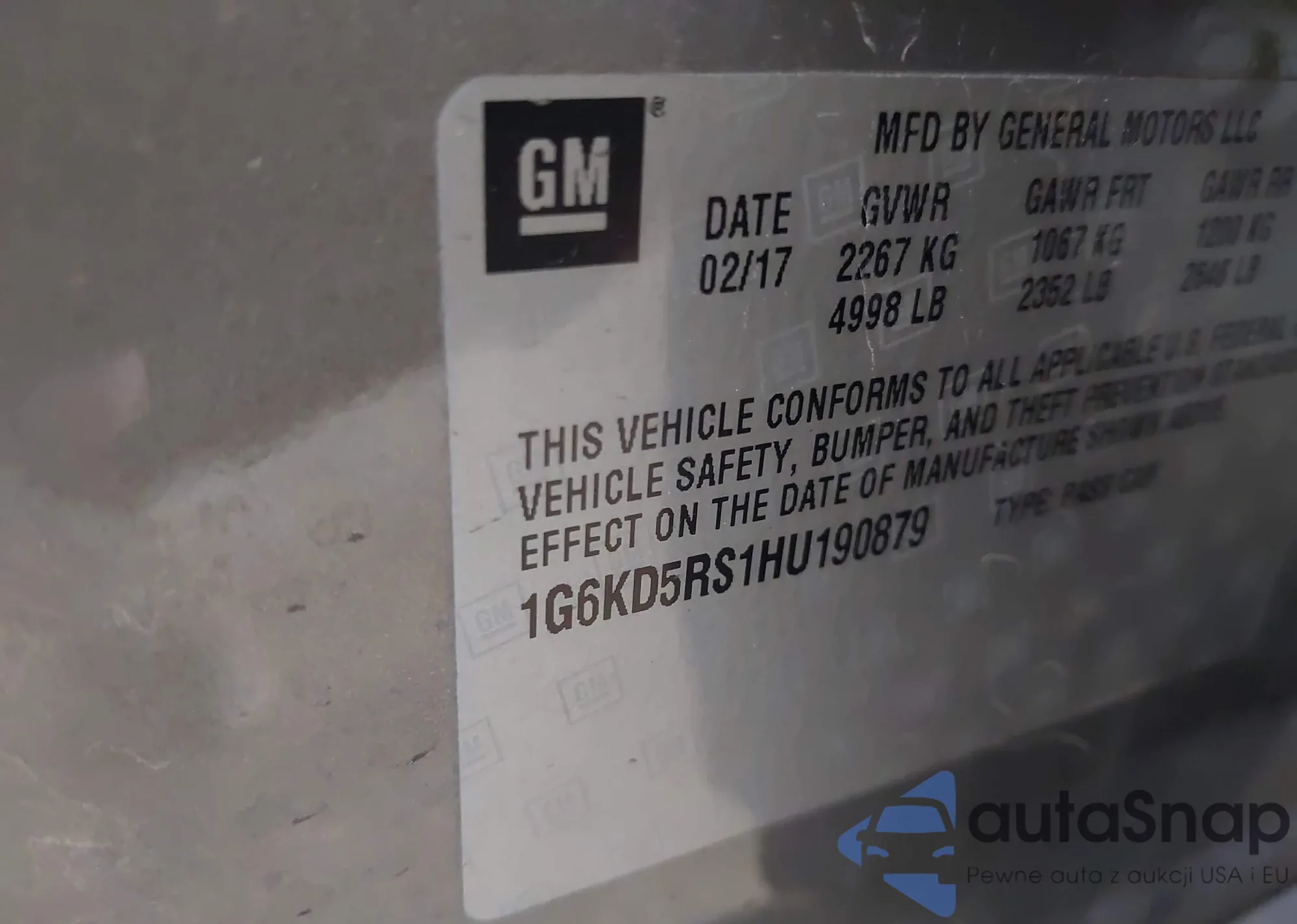 VIN: 1G6KD5RS1HU190879