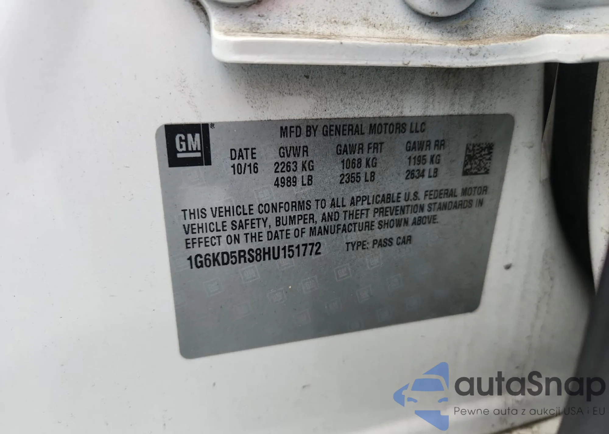 • VIN: 1G6KD5RS8HU151772