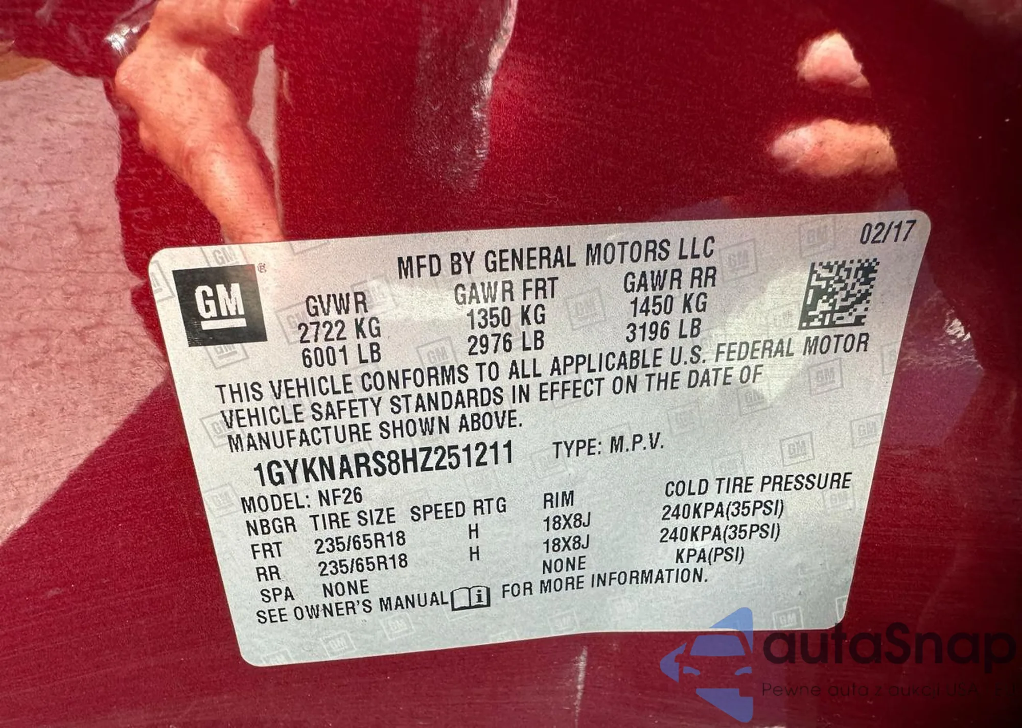 VIN: 1GYKNARS8HZ251211
