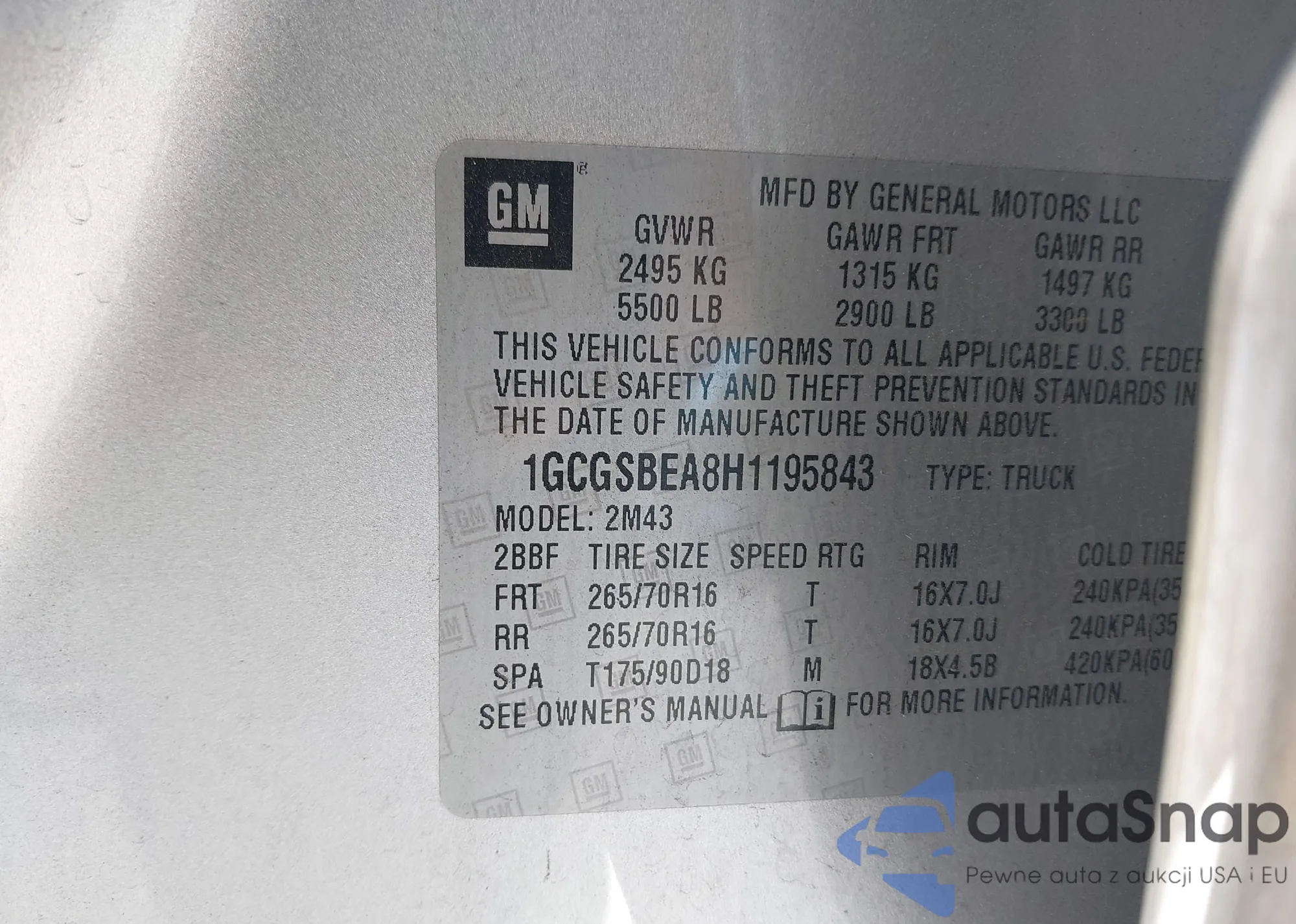 VIN: 1GCGSBEA8H1195843