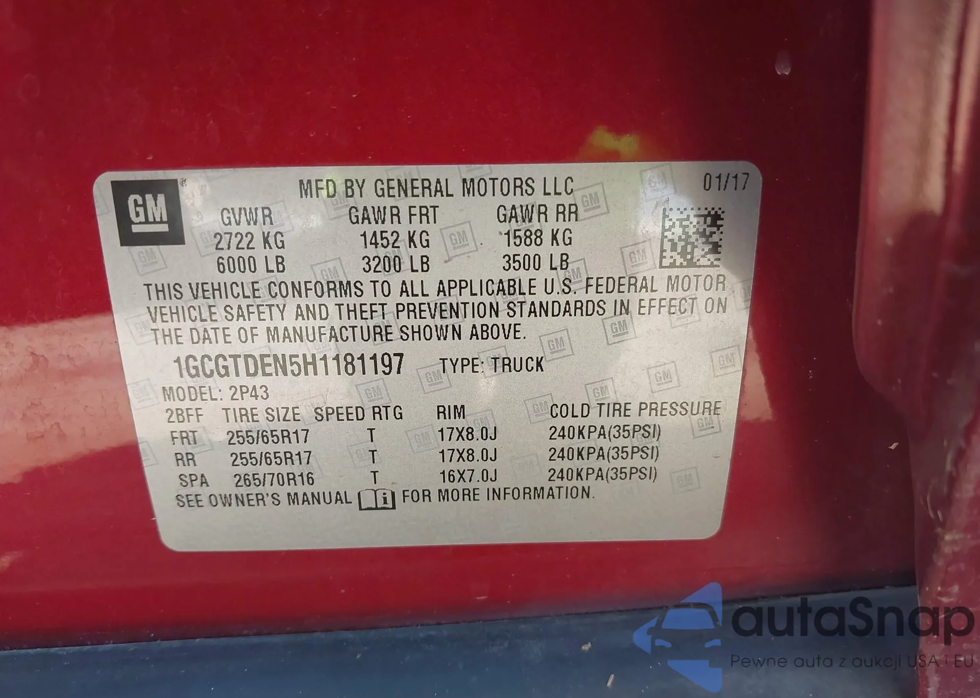 • VIN: 1GCGTDEN5H1181197