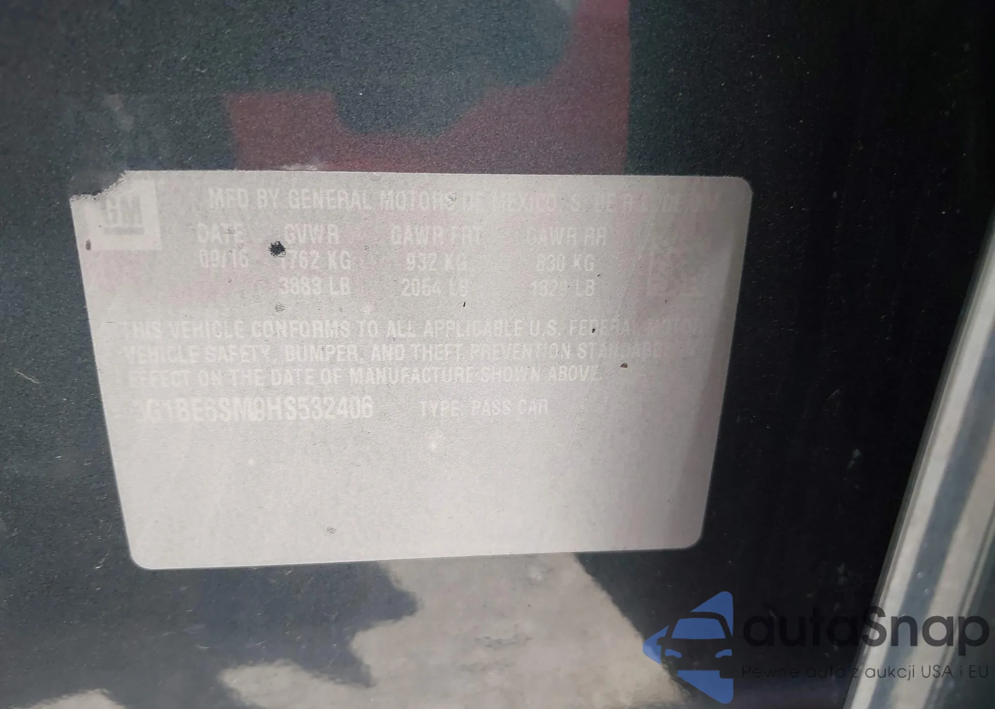 VIN: 3G1BE6SM9HS532406