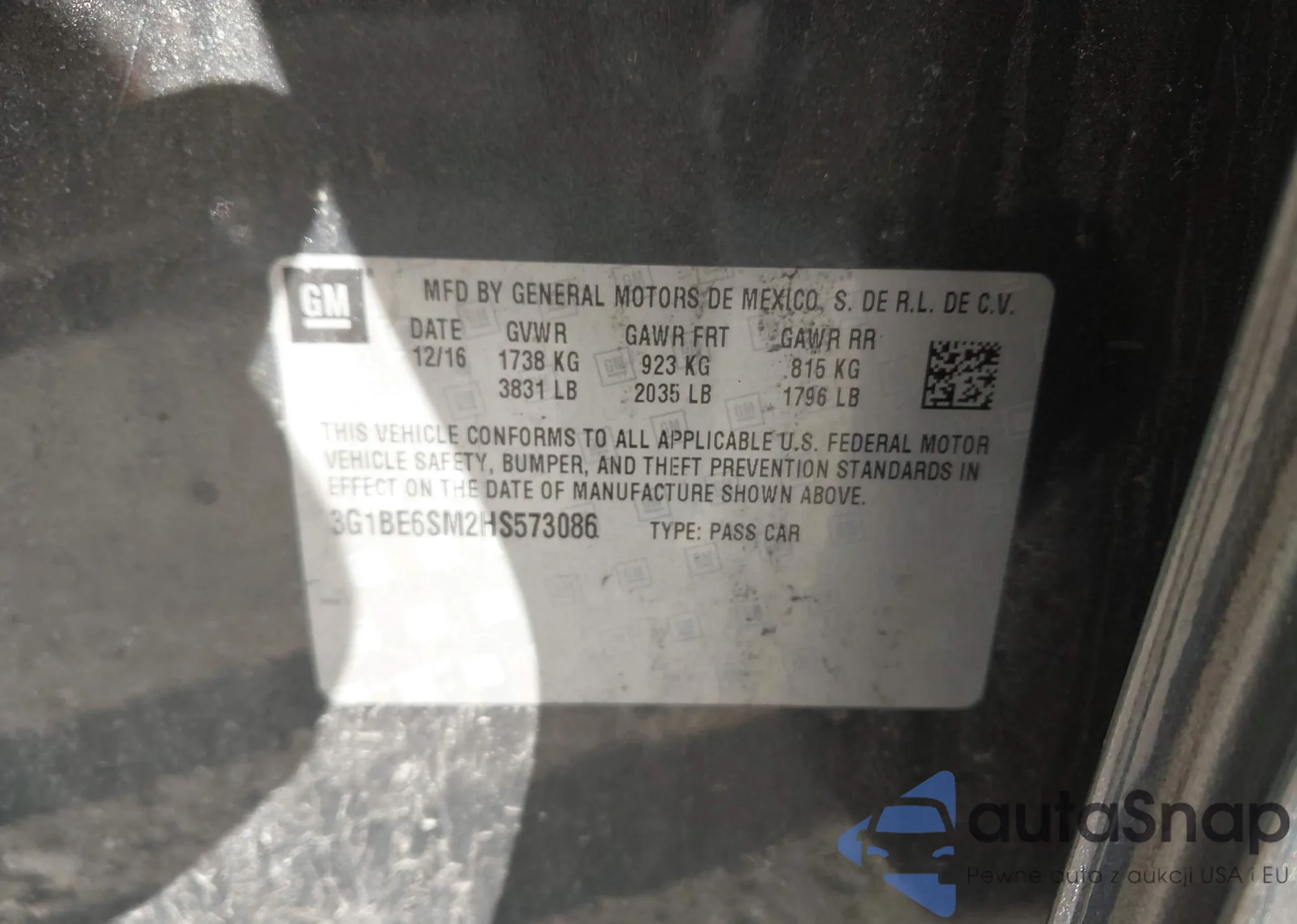Samochód Chevrolet Cruze 2017 (VIN 3G1BE6SM2HS573086) nie był wcześniej licytowany. Dokumenty są czyste, przebieg odpowiada lub jest niższy niż średnia rynku. Sprzedaje go firma ubezpieczeniowa – polecamy zakup. Dostawa do portu zajmie ok. 6–8 tygodni.
