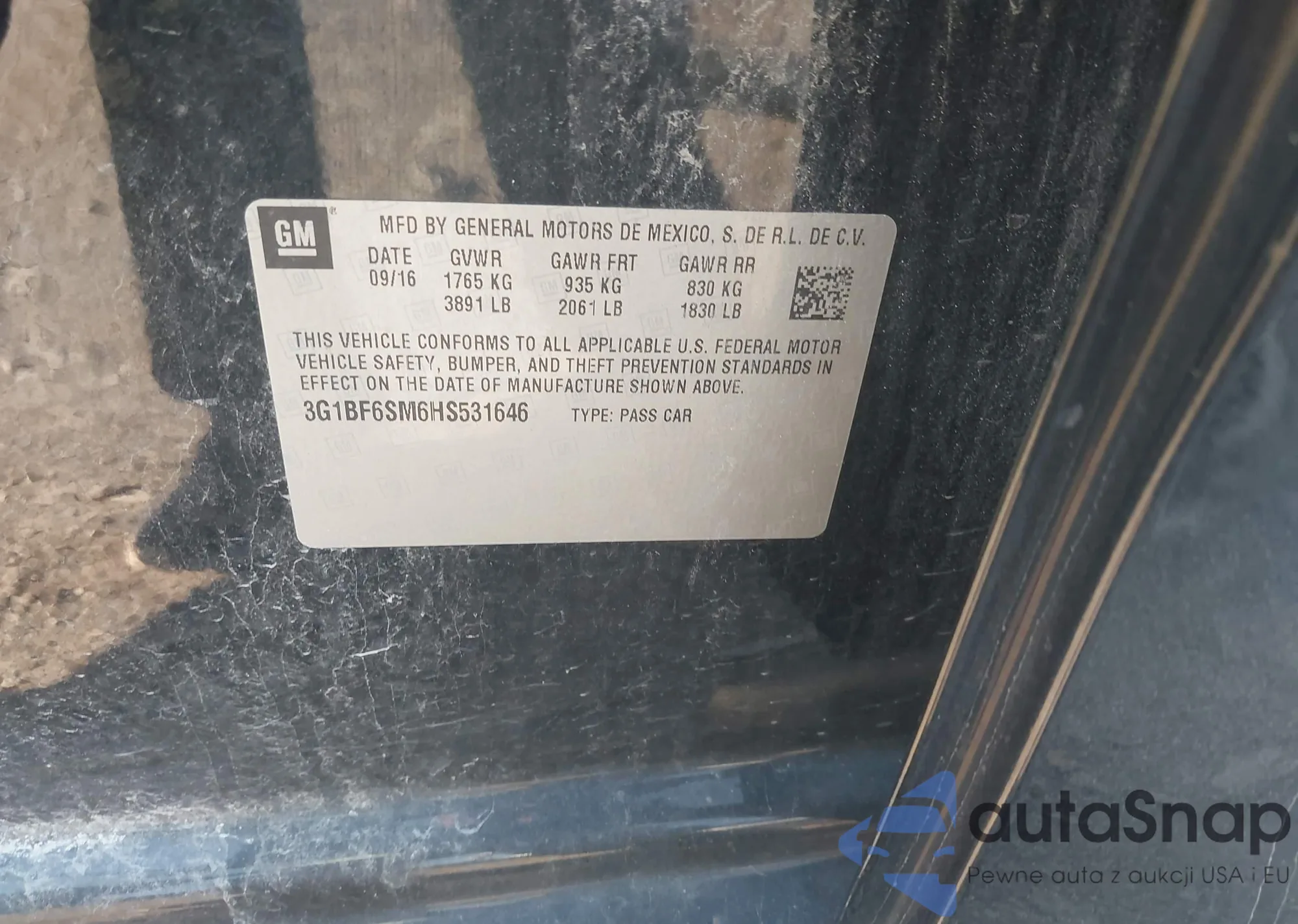 VIN: 3G1BF6SM6HS531646