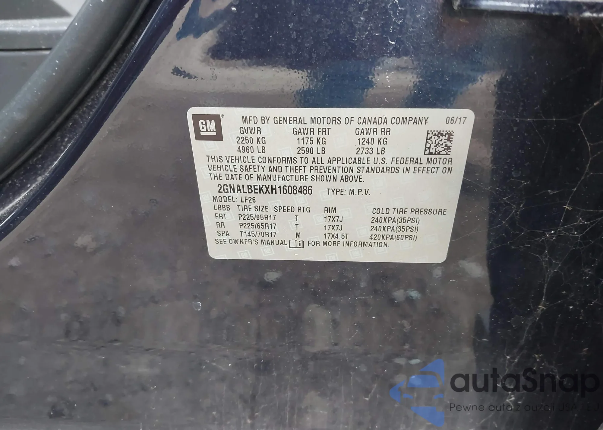 Samochód Chevrolet Equinox 2017 (VIN 2GNALBEKXH1608486) nie był wcześniej licytowany. Dokumenty są czyste, przebieg odpowiada lub jest niższy niż średnia rynku. Sprzedaje go firma ubezpieczeniowa – polecamy zakup. Dostawa do portu zajmie ok. 6–8 tygodni.