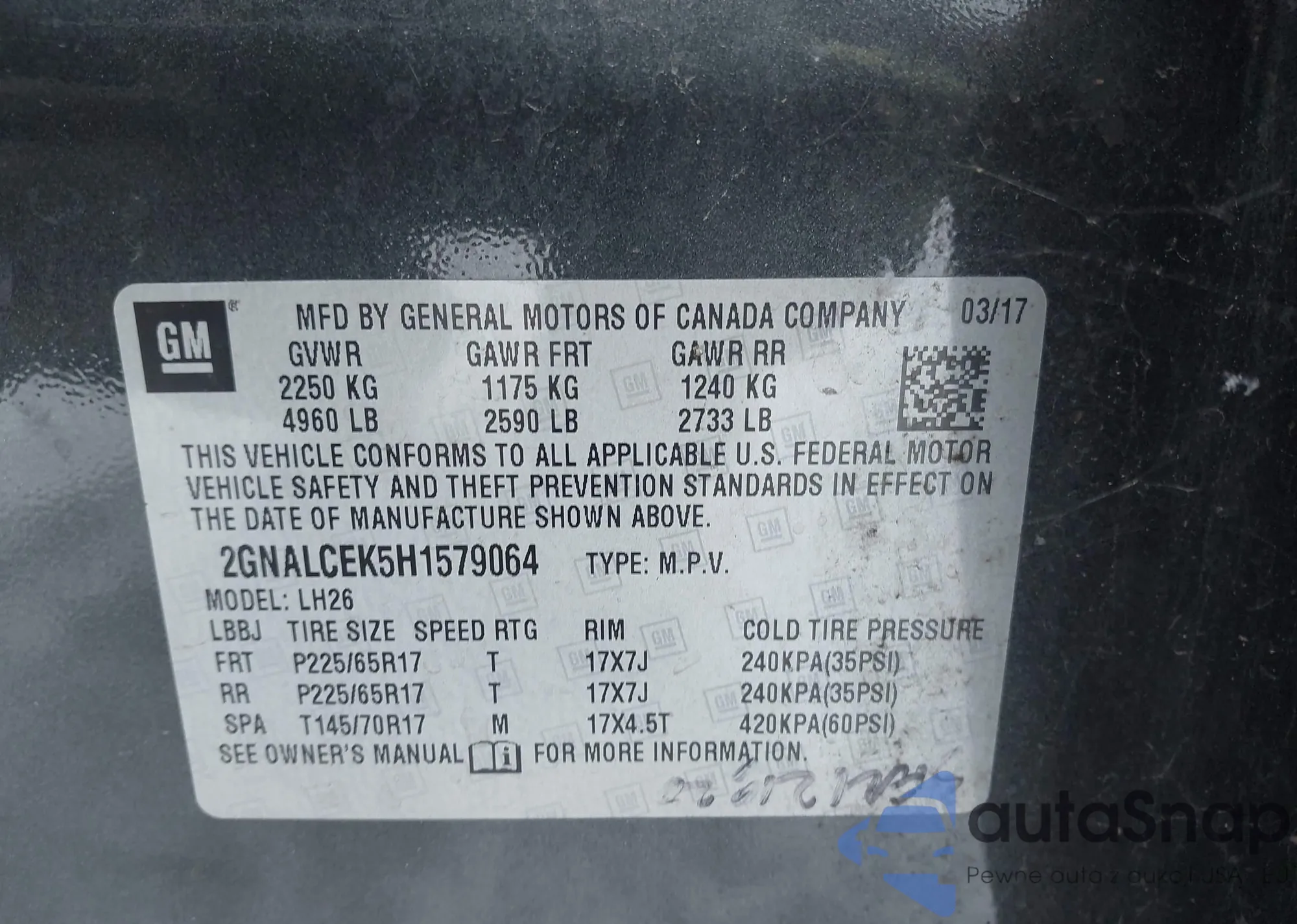 VIN: 2GNALCEK5H1579064