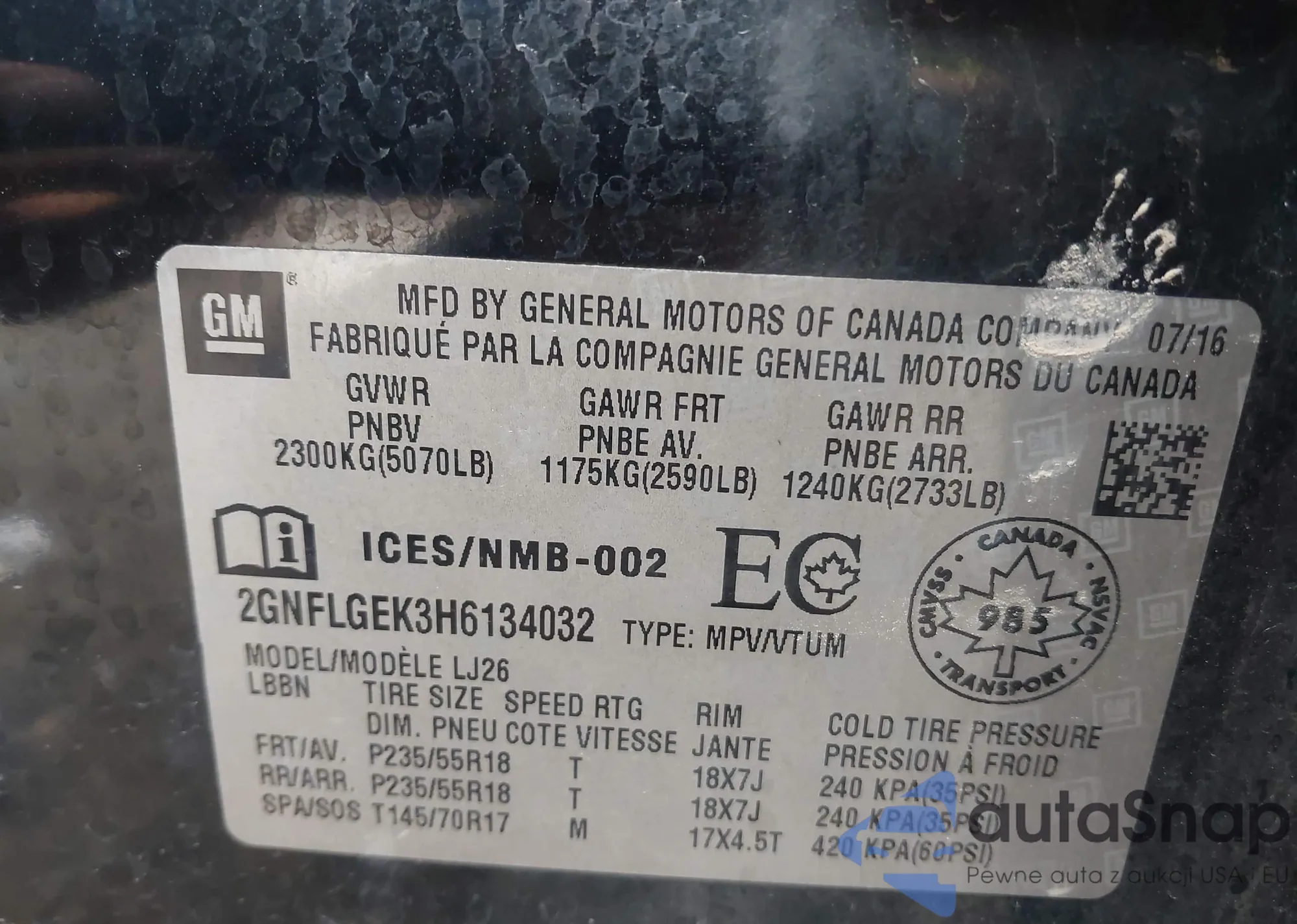 VIN: 2GNFLGEK3H6134032
