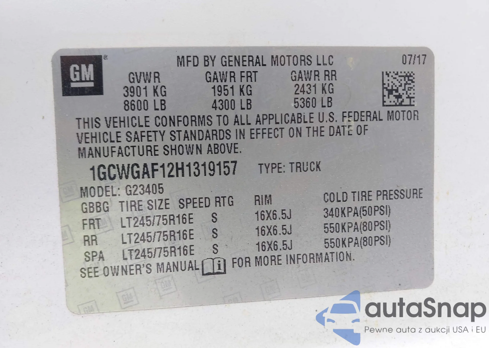 VIN: 1GCWGAF12H1319157