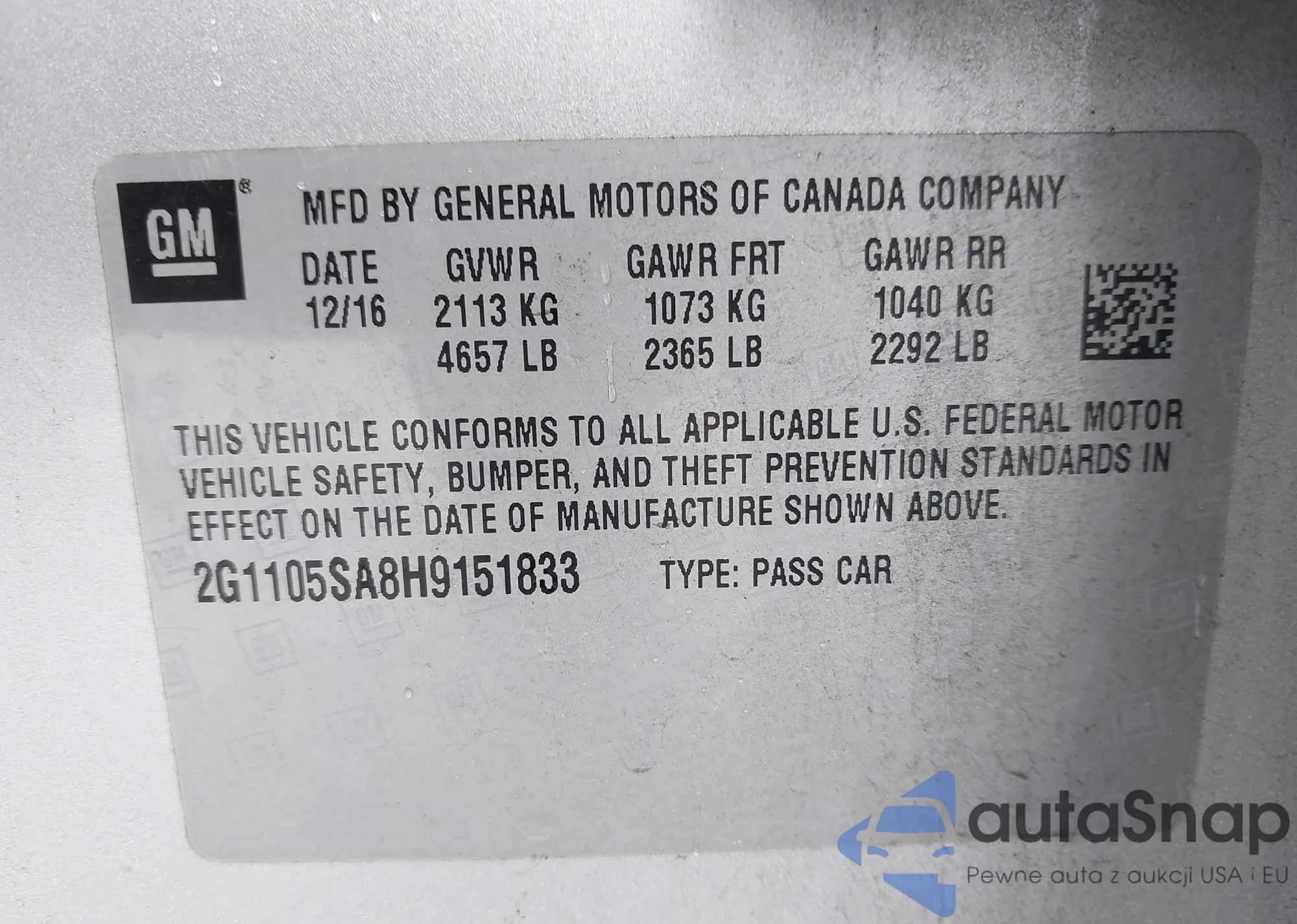 VIN: 2G1105SA8H9151833