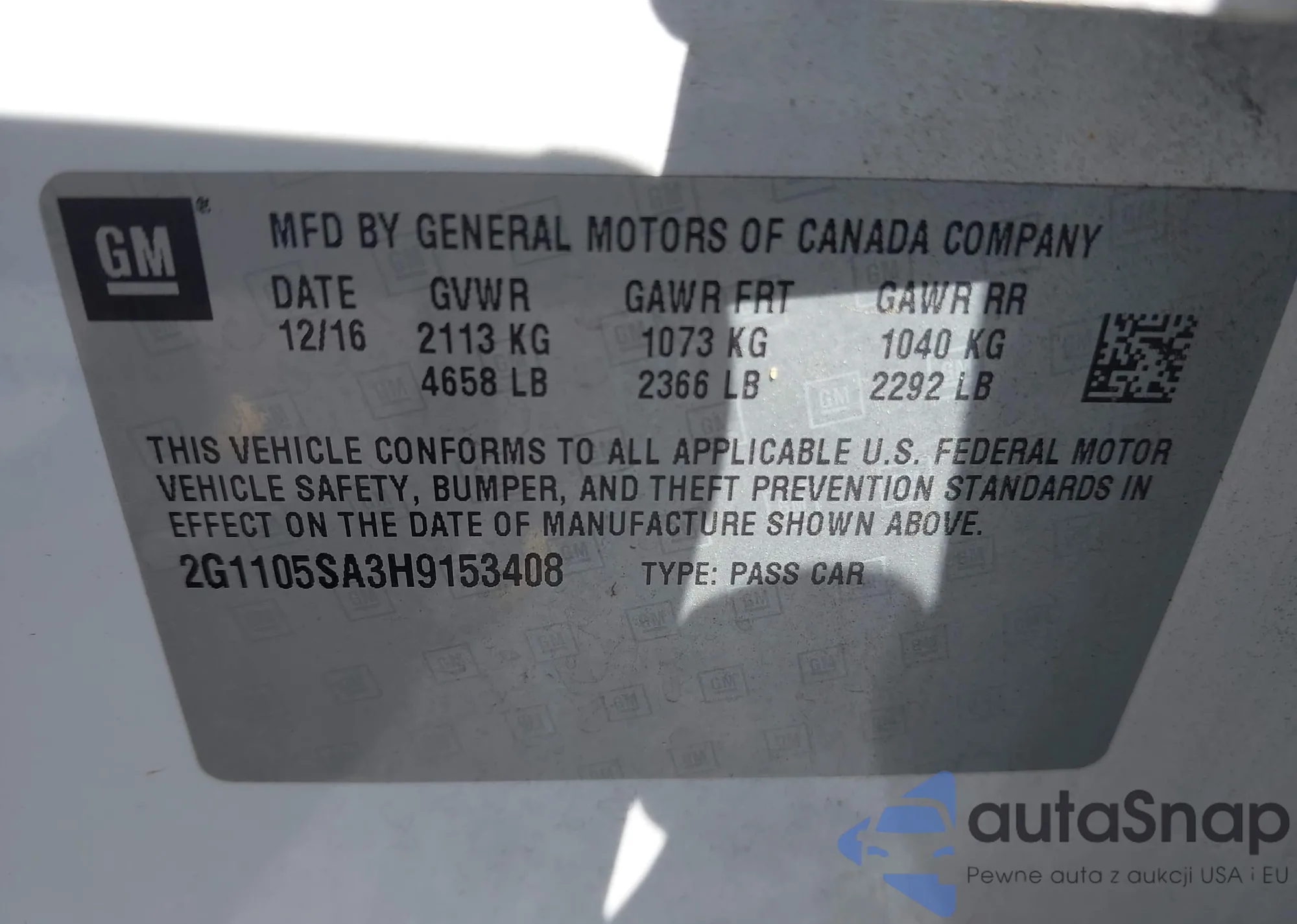 VIN: 2G1105SA3H9153408
