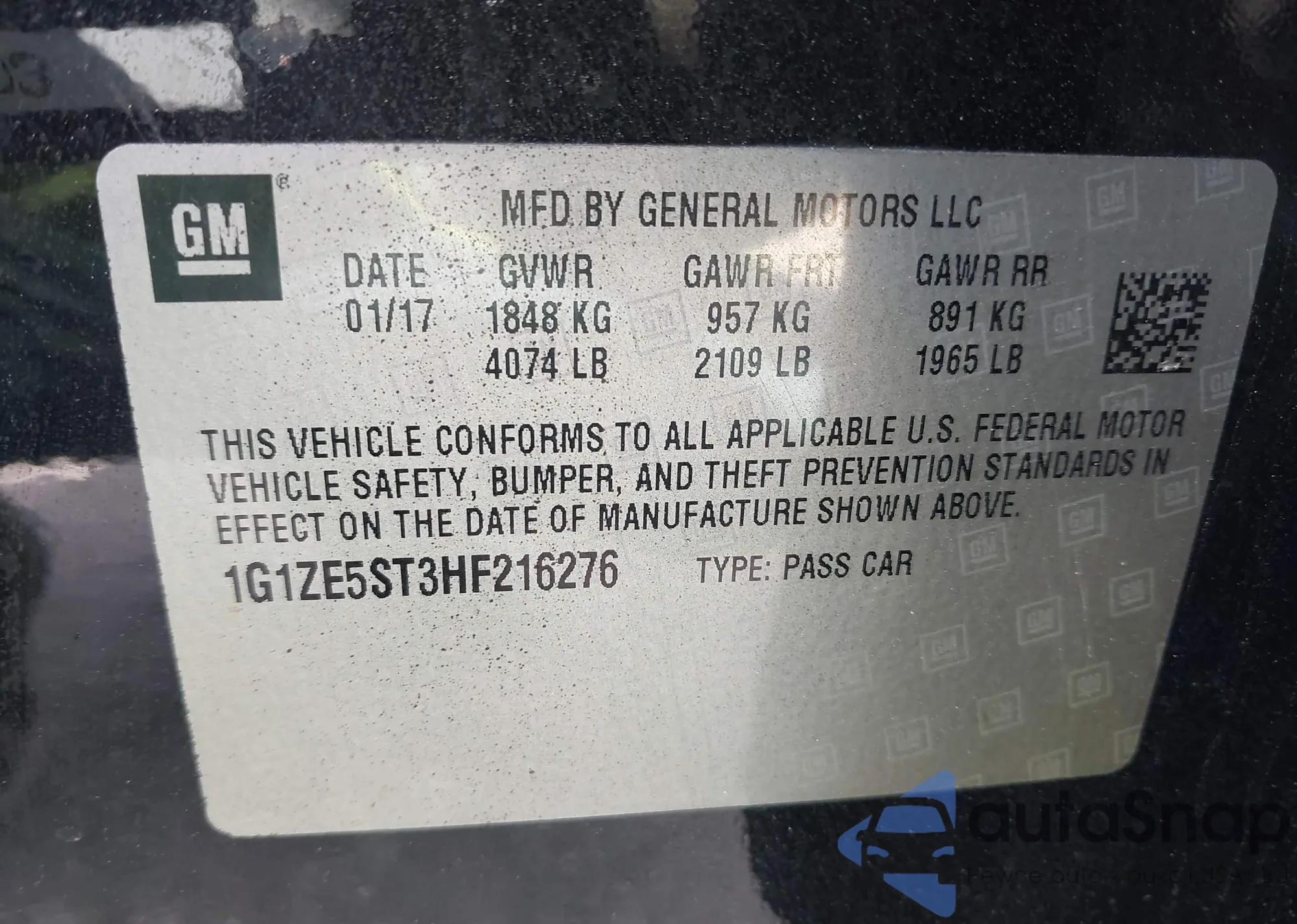 VIN: 1G1ZE5ST3HF216276