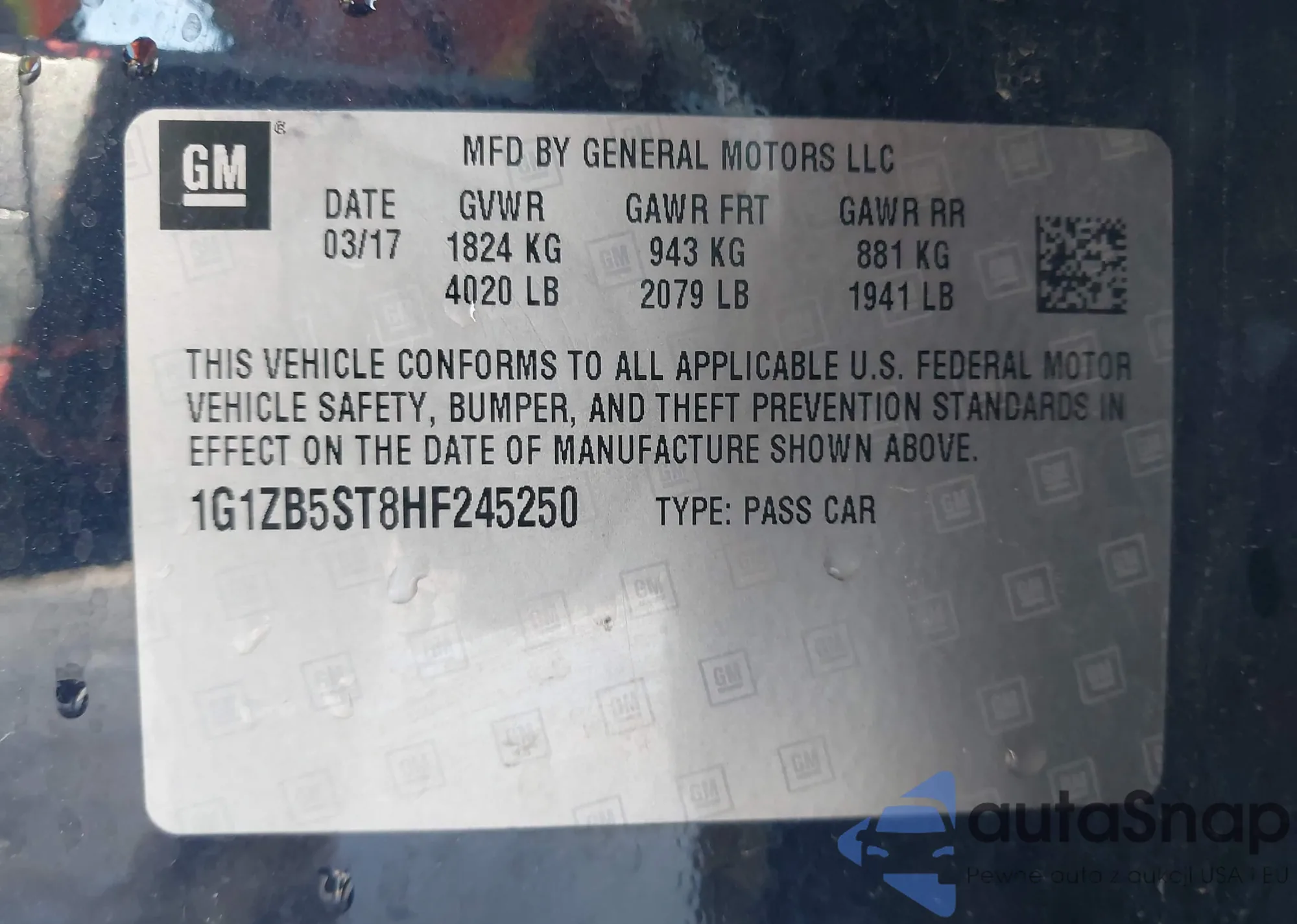 VIN: 1G1ZB5ST8HF245250