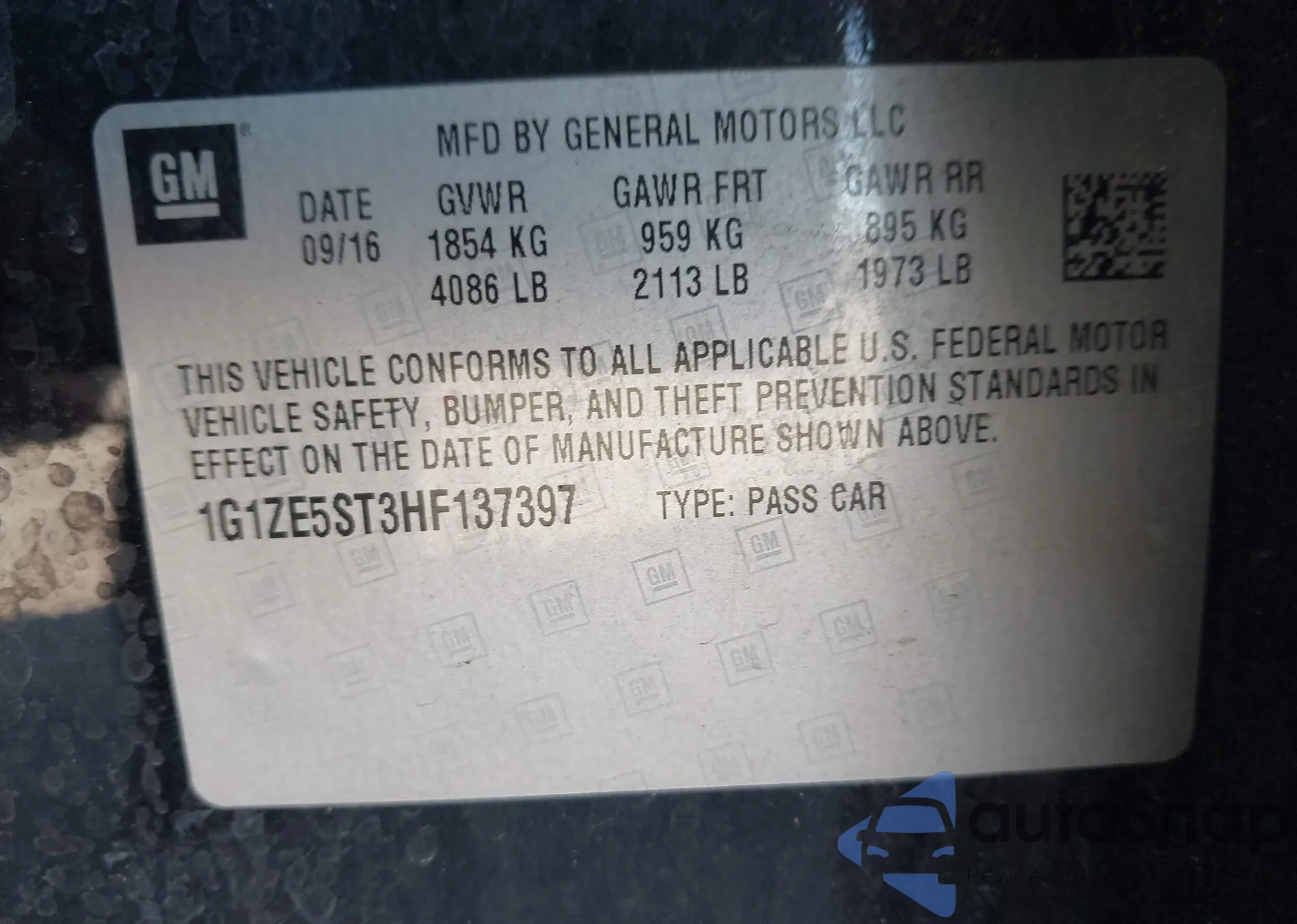VIN: 1G1ZE5ST3HF137397