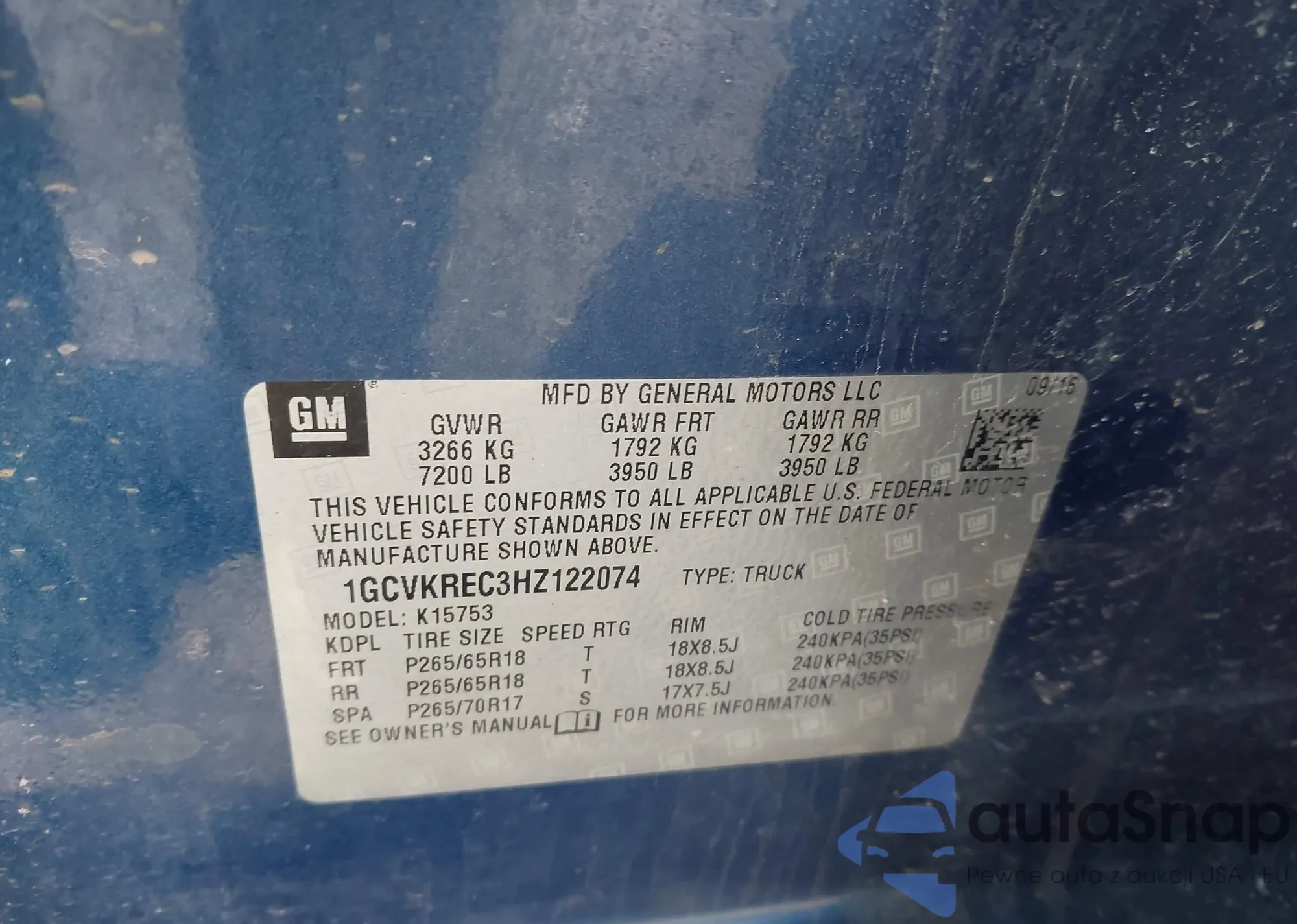 VIN: 1GCVKREC3HZ122074
