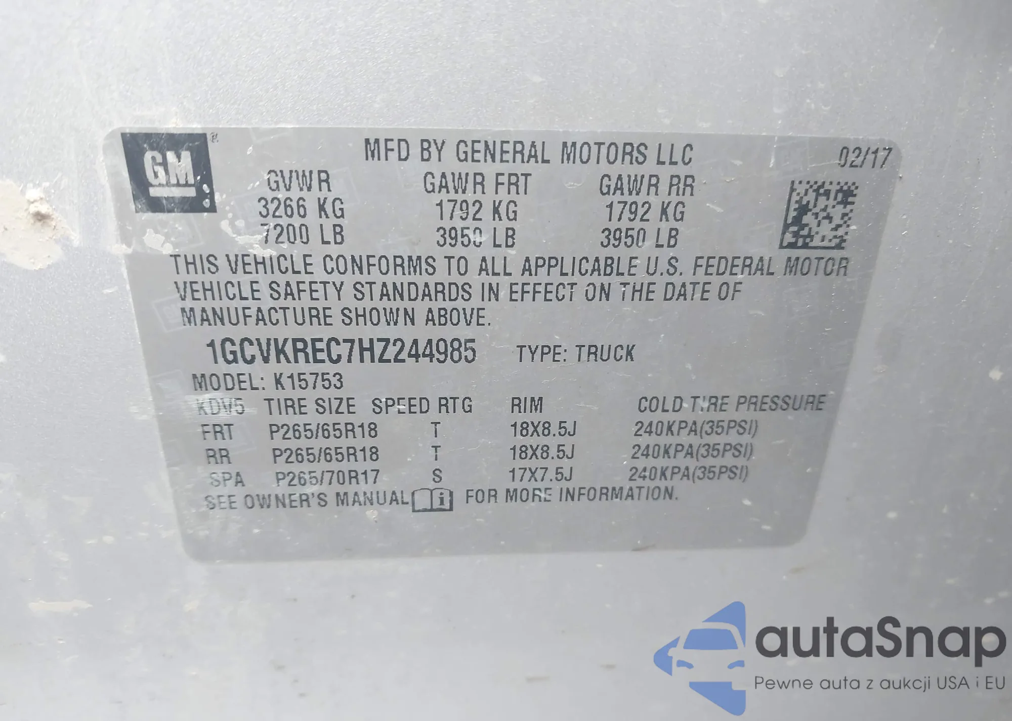 VIN: 1GCVKREC7HZ244985