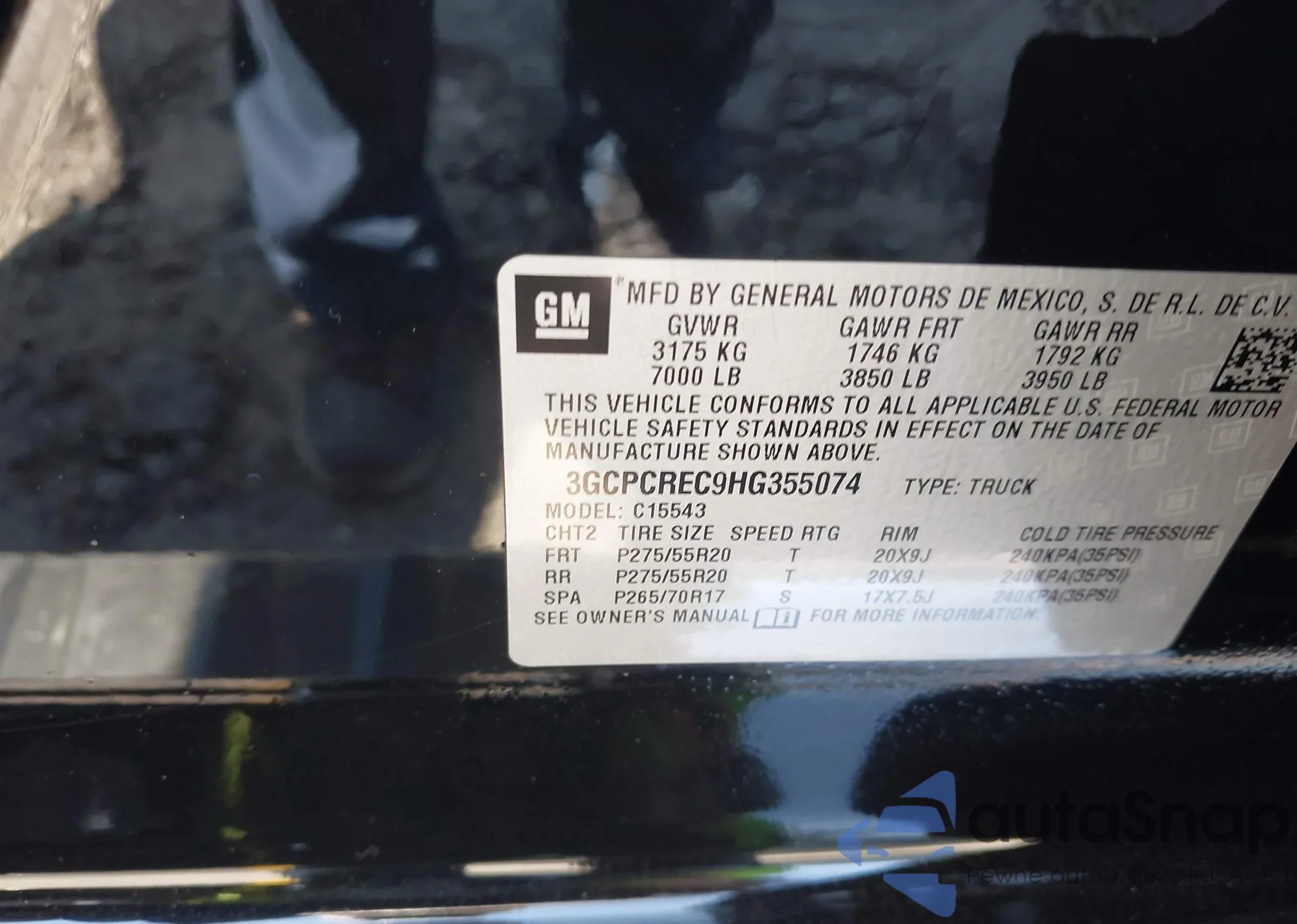 • VIN: 3GCPCREC9HG355074