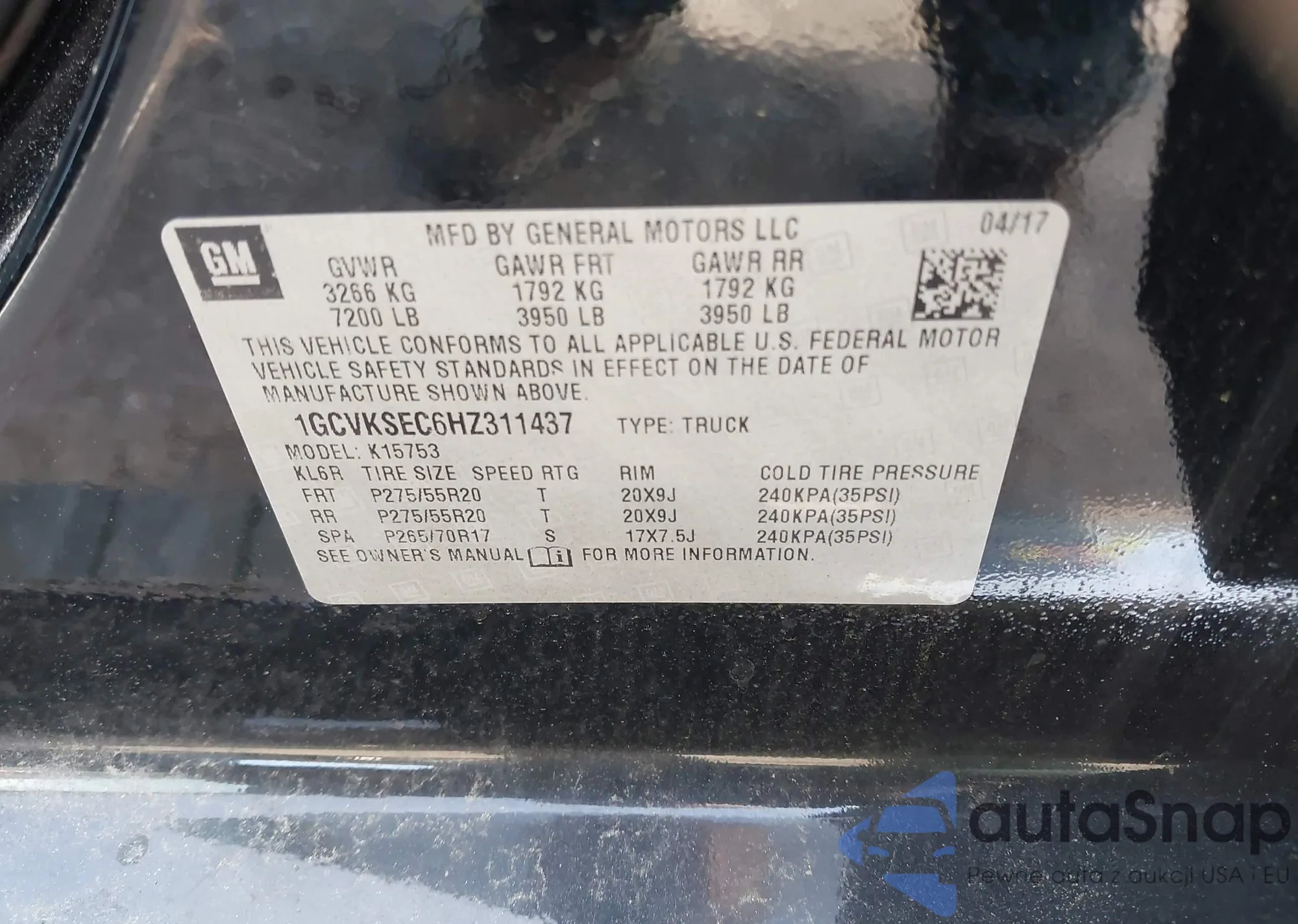 VIN: 1GCVKSEC6HZ311437