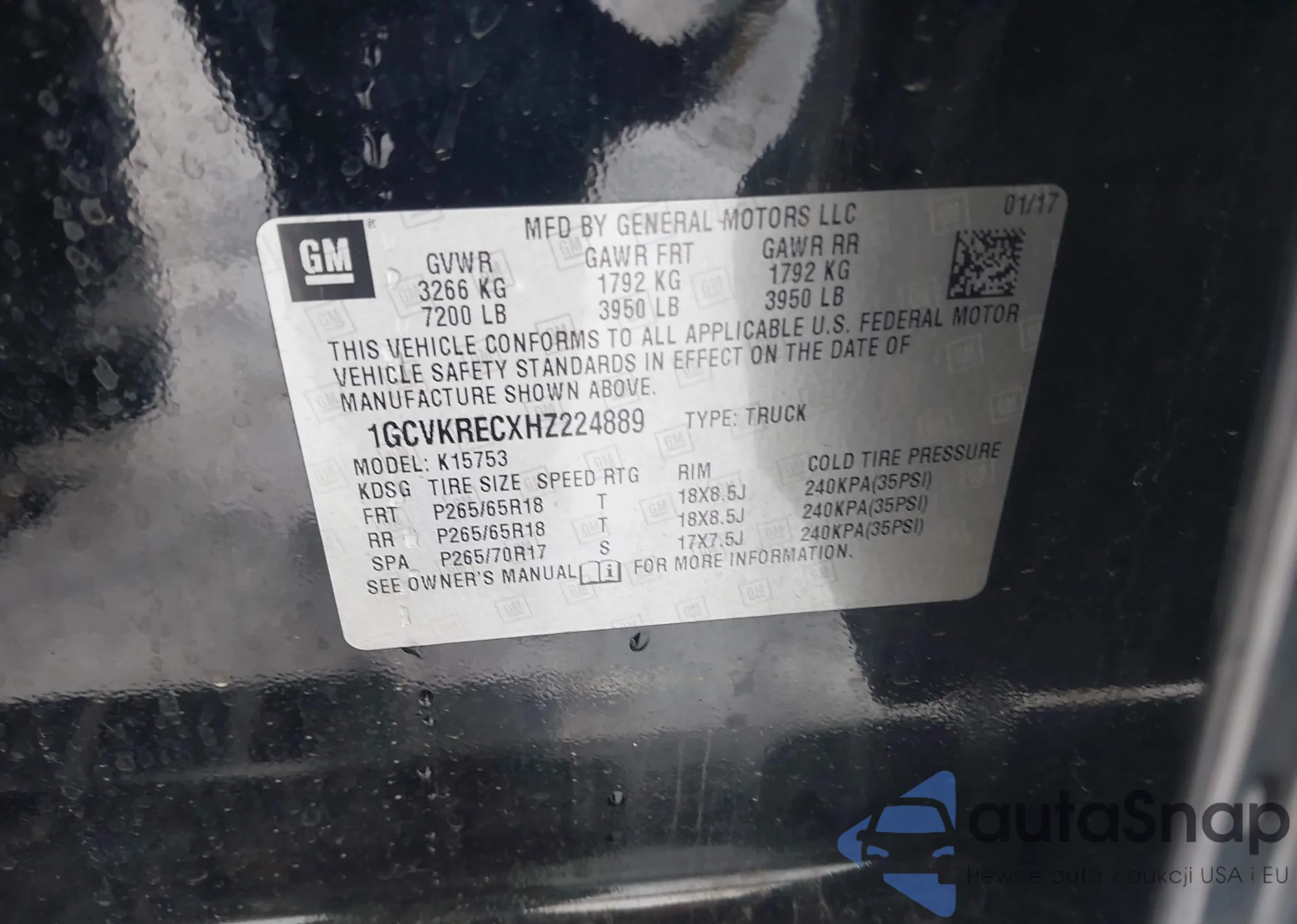 VIN: 1GCVKRECXHZ224889