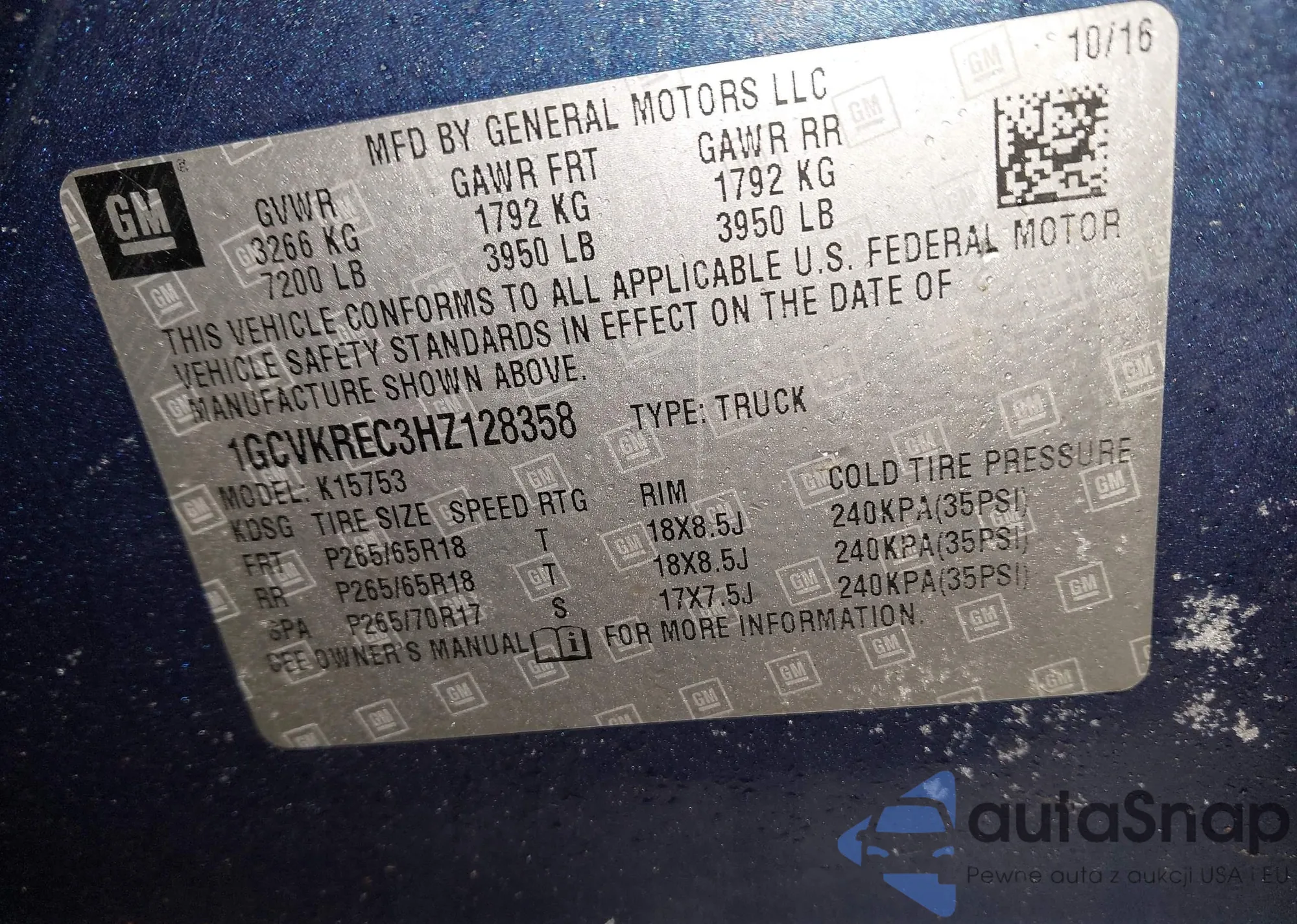 VIN: 1GCVKREC3HZ128358