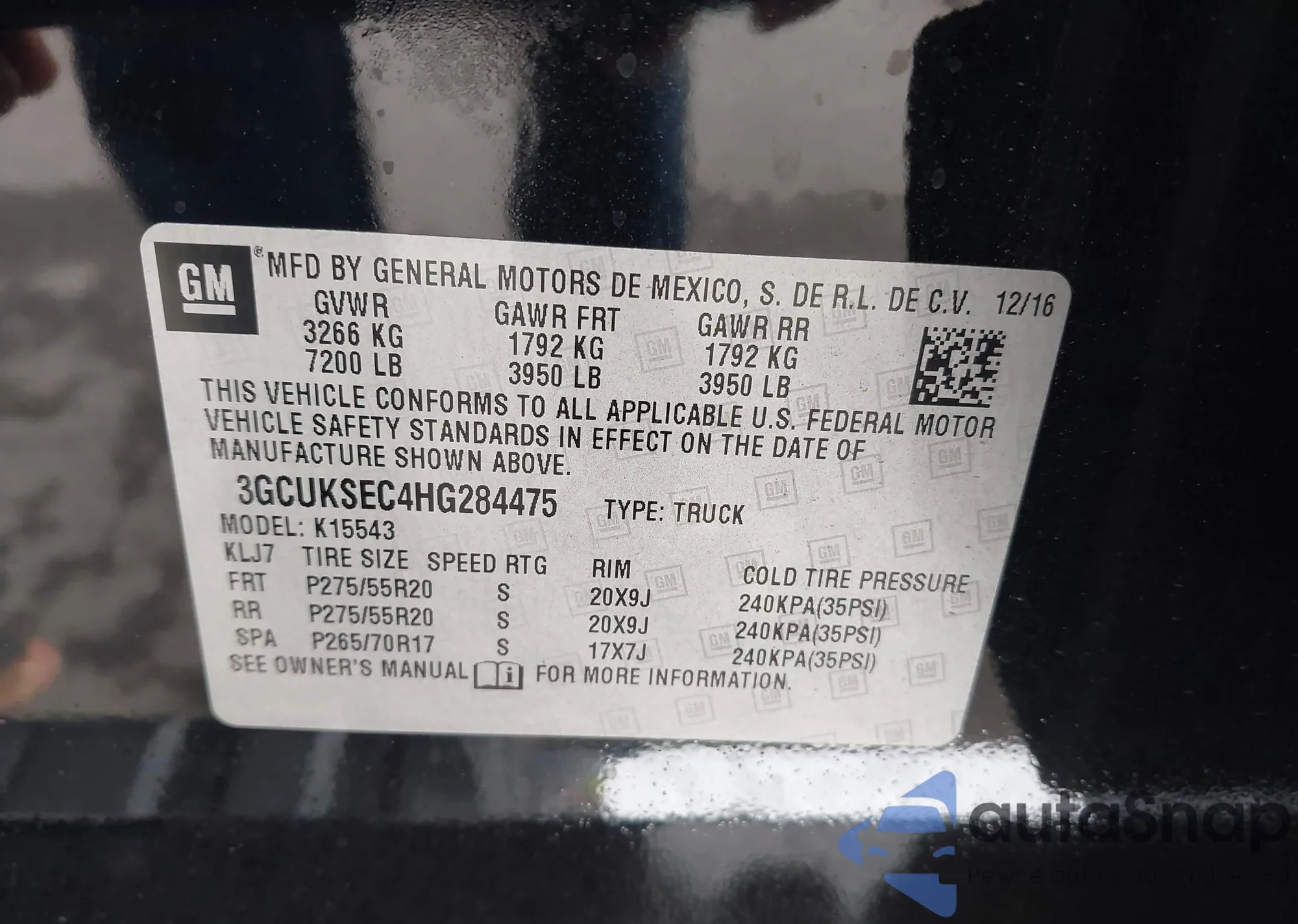 • VIN: 3GCUKSEC4HG284475