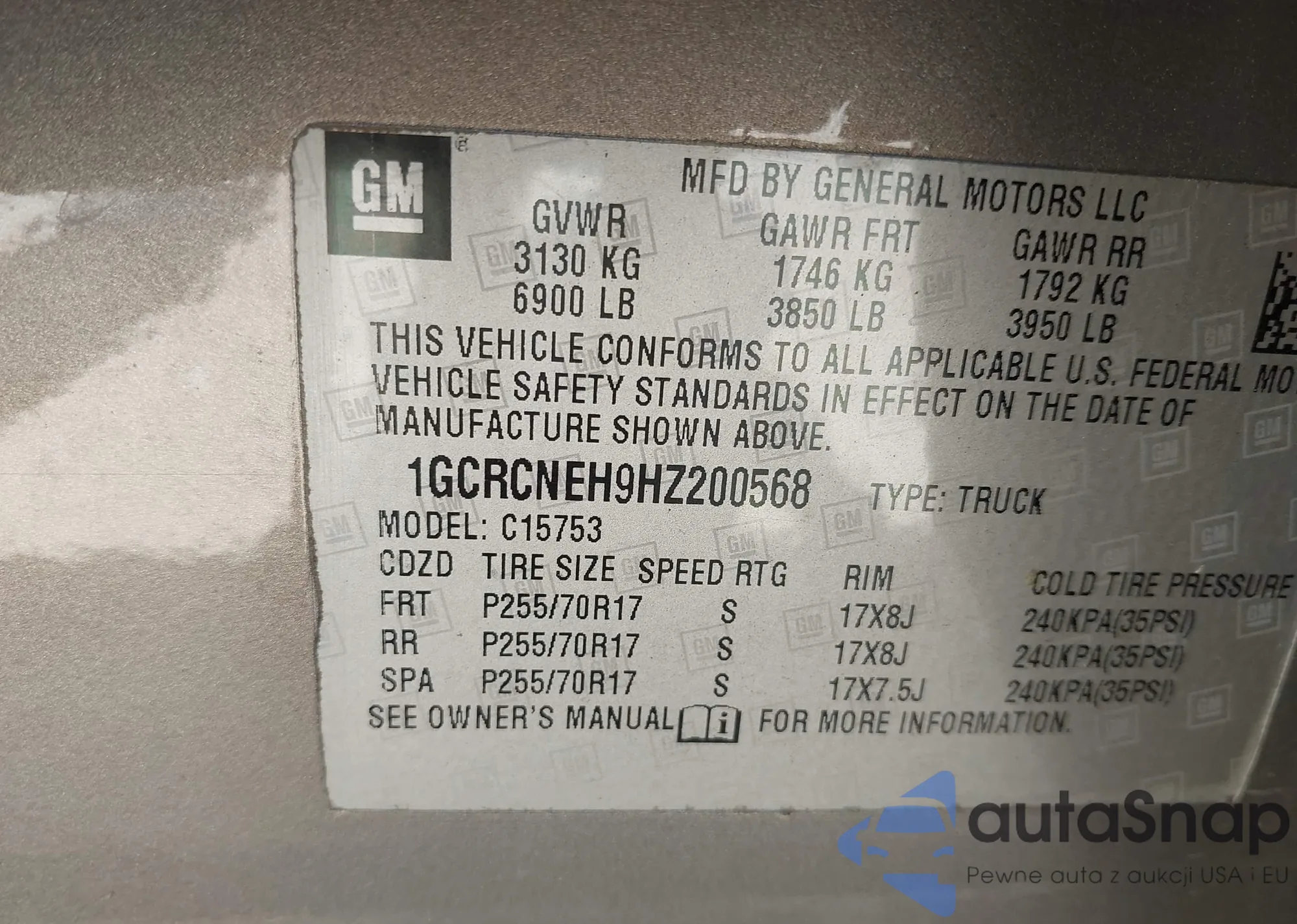 VIN: 1GCRCNEH9HZ200568