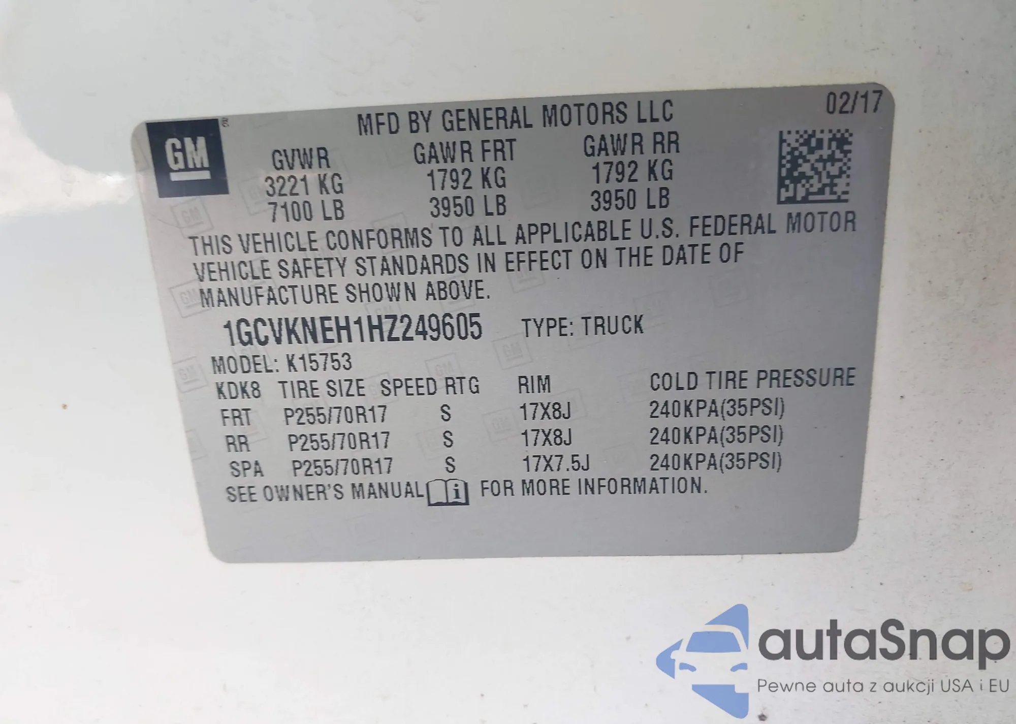 VIN: 1GCVKNEH1HZ249605