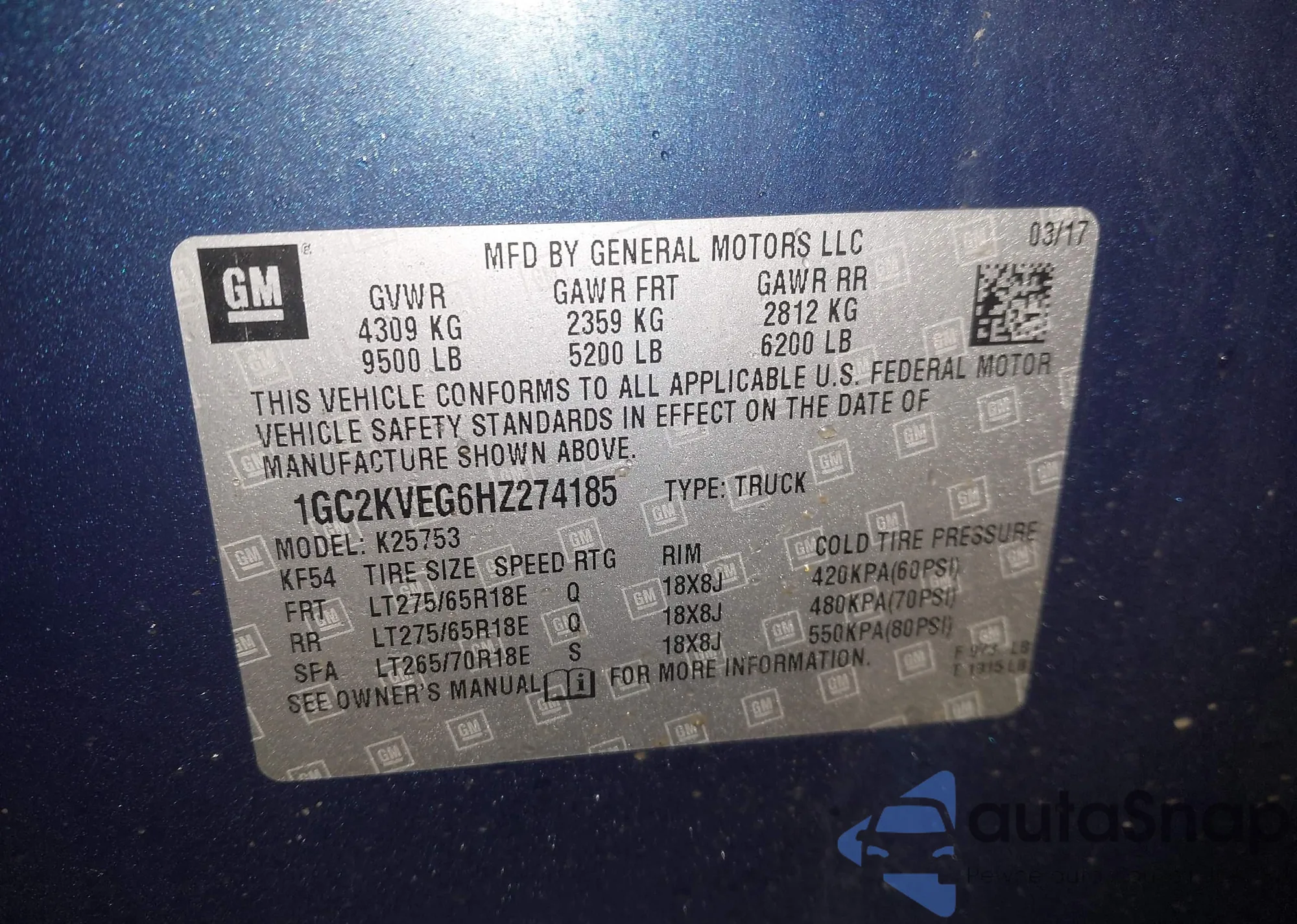 VIN: 1GC2KVEG6HZ274185