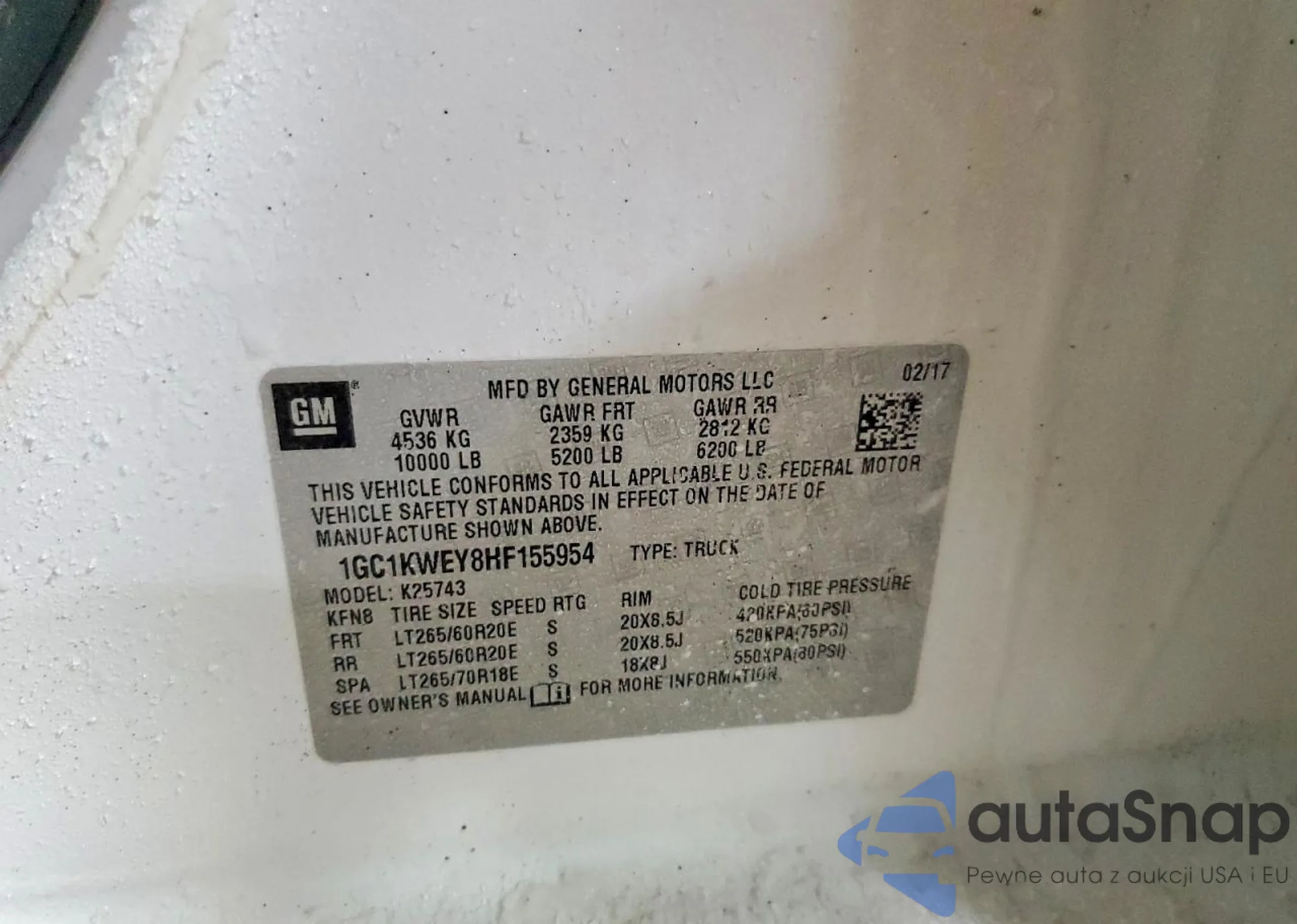 1GC1KWEY8HF155954 COPART