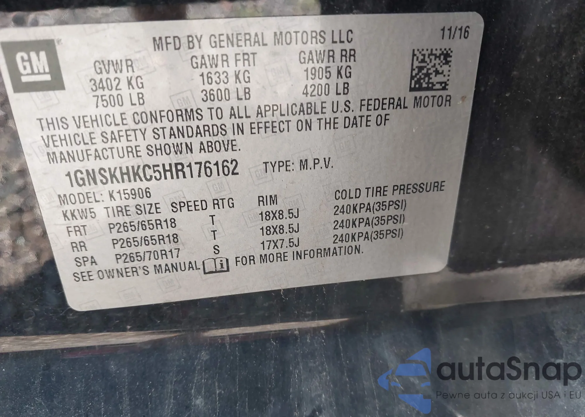 1GNSKHKC5HR176162 IAAI