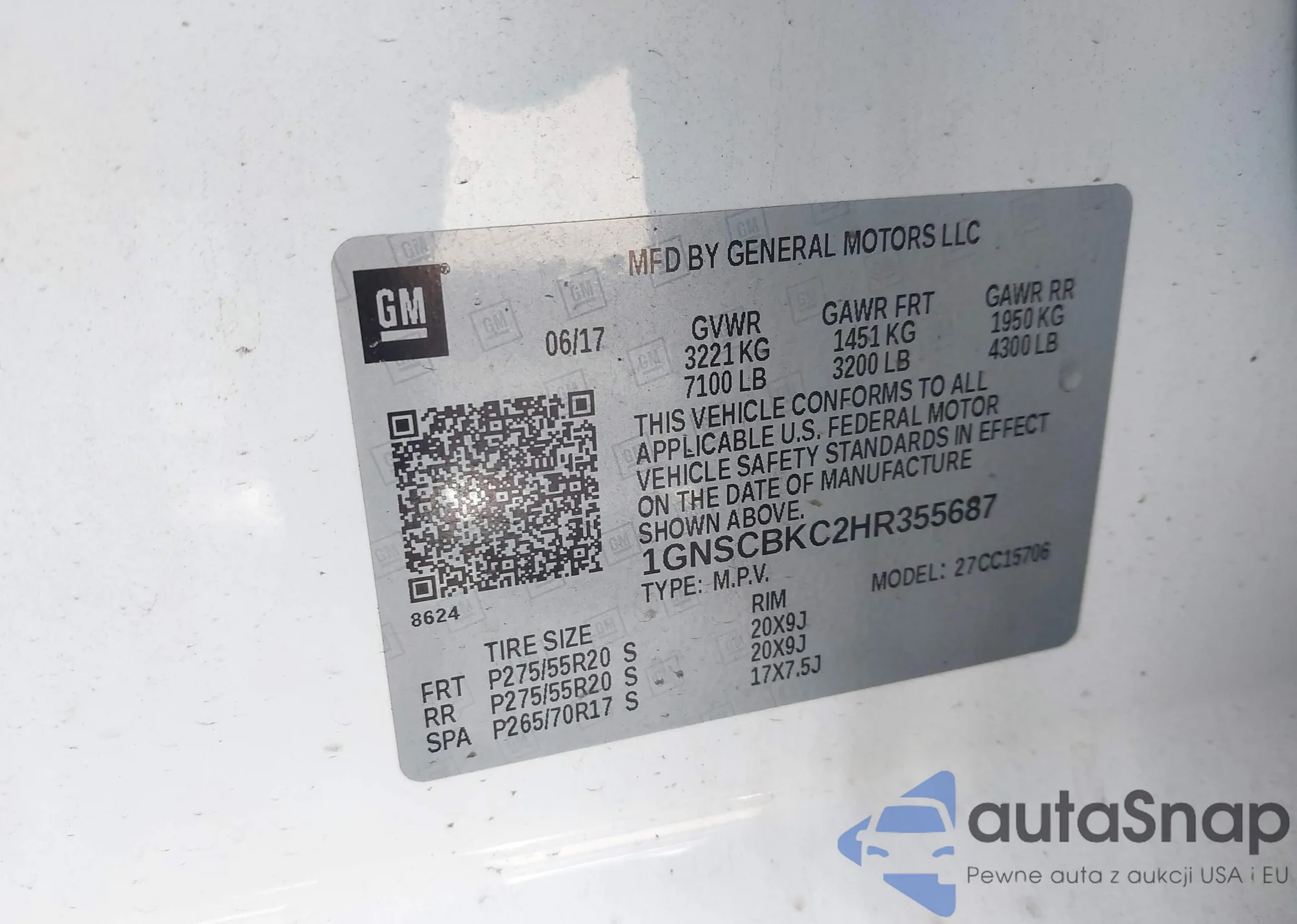 VIN: 1GNSCBKC2HR355687