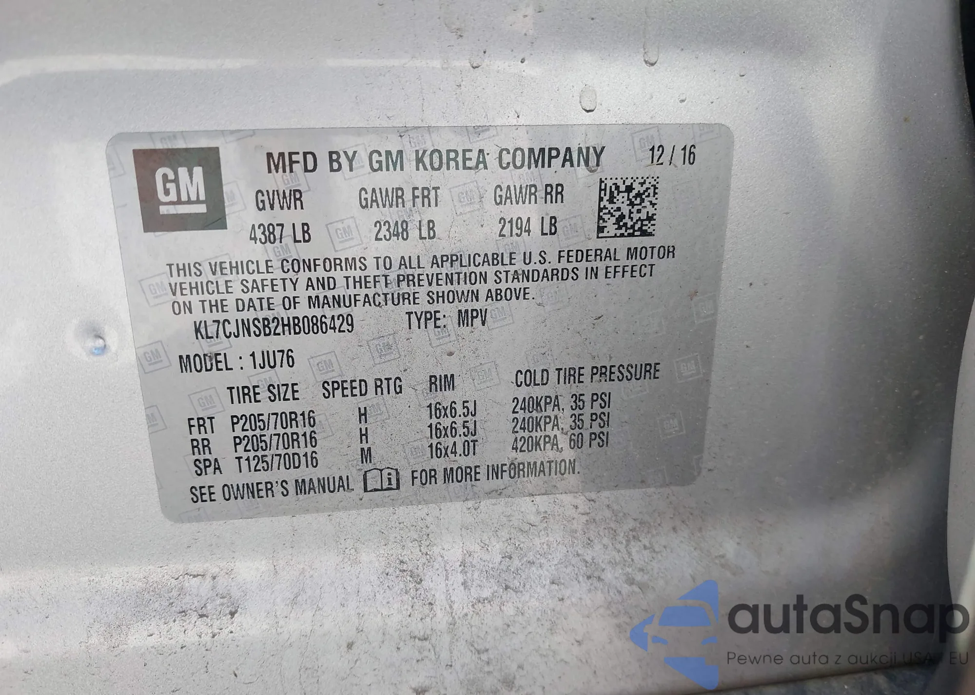 VIN: KL7CJNSB2HB086429