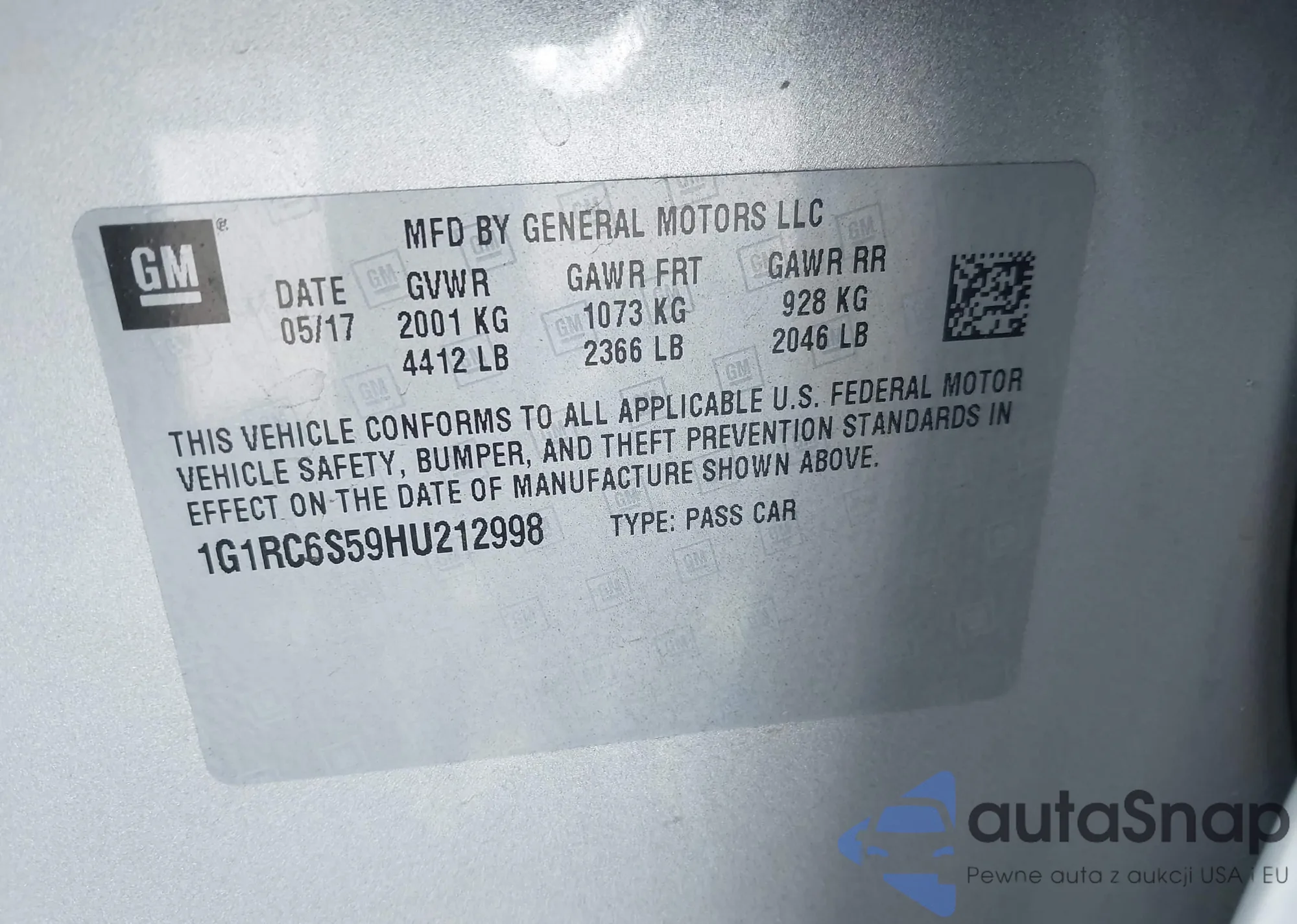 VIN: 1G1RC6S59HU212998