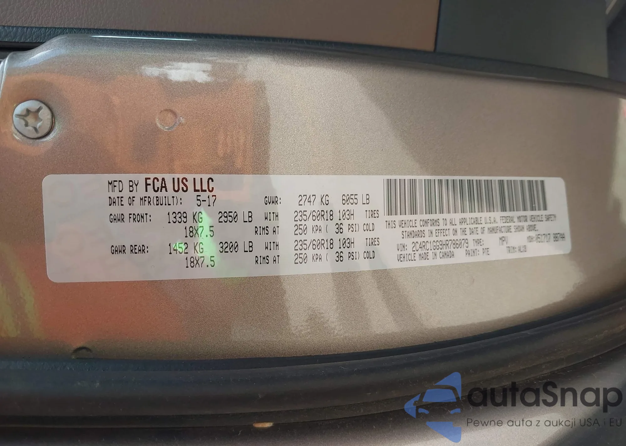 VIN: 2C4RC1GG9HR786079