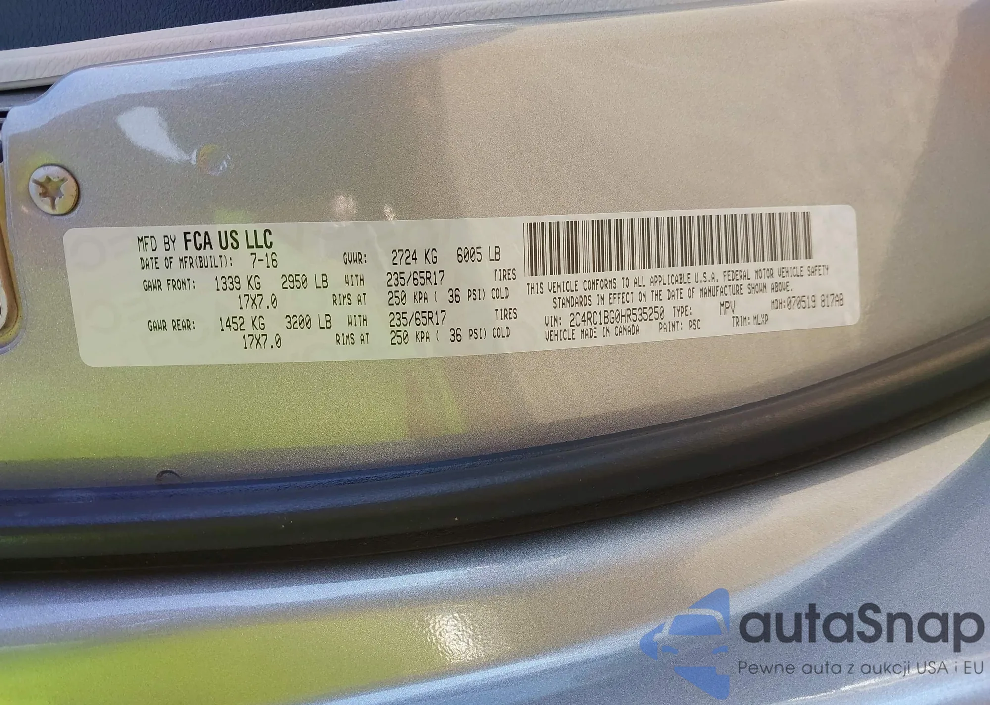 VIN: 2C4RC1BG0HR535250