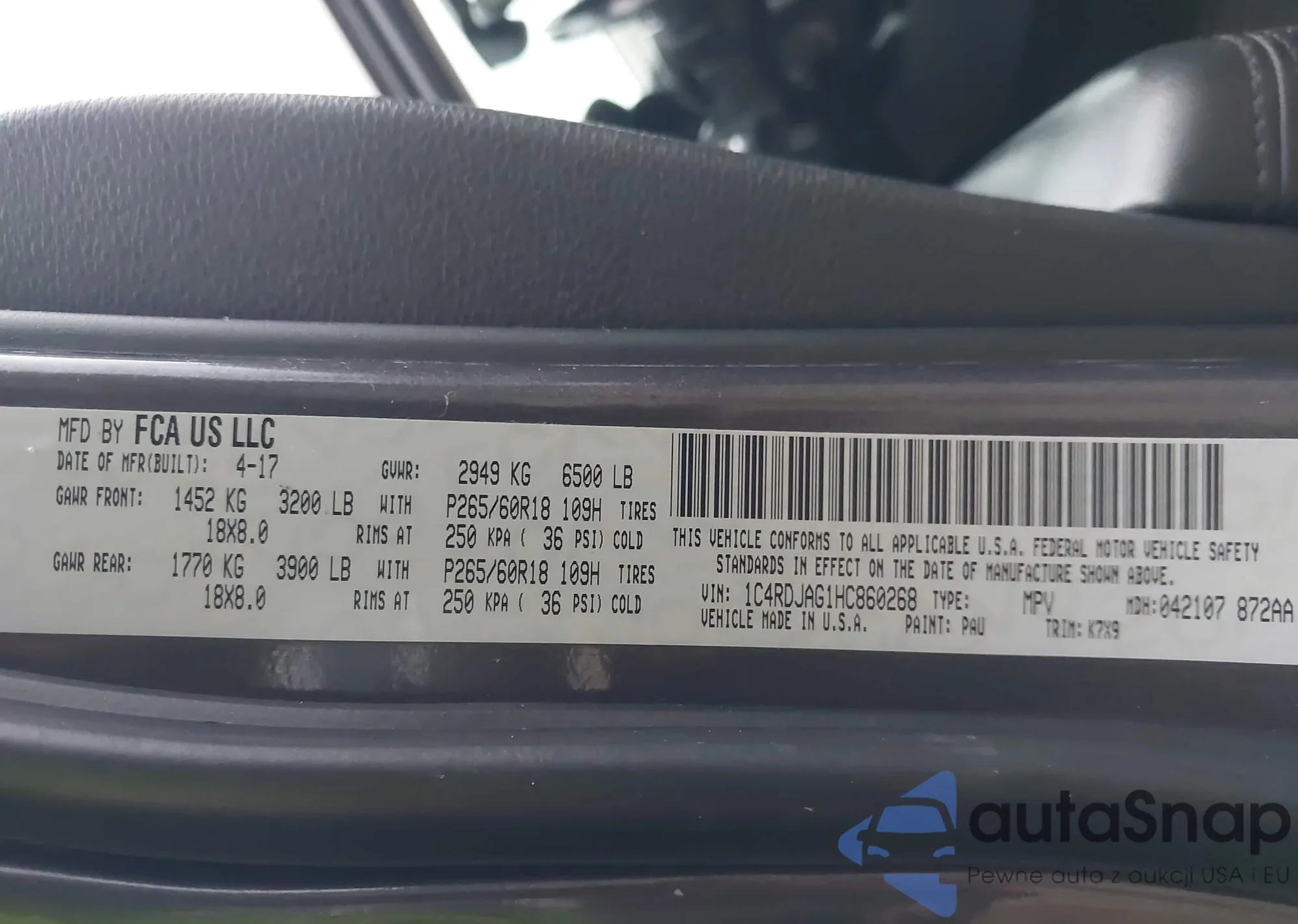 VIN: 1C4RDJAG1HC860268