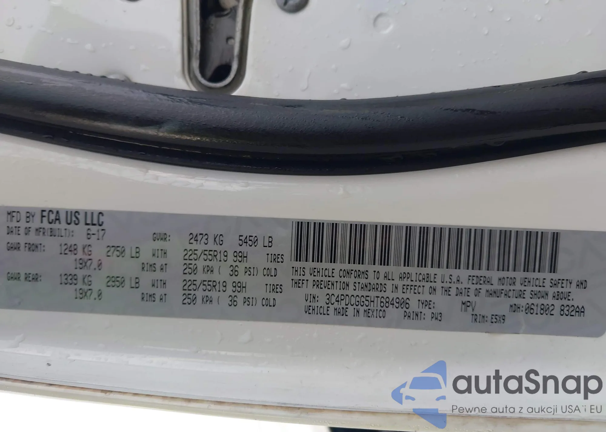 Samochód Dodge Journey 2017 (VIN 3C4PDCGG5HT684906) nie był wcześniej licytowany. Dokumenty są czyste, przebieg odpowiada lub jest niższy niż średnia rynku. Sprzedaje go firma ubezpieczeniowa – polecamy zakup. Dostawa do portu zajmie ok. 6–8 tygodni.
